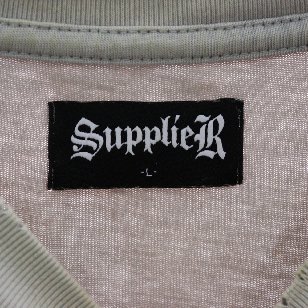 ■商品情報[商品番号]3725E200016[ブランド]SUPPLIER(サプライヤ)[モデル]ラインストーン 半袖Tシャツ カットソー グレー[サイズ]平置き採寸 着丈:69.5センチ 身幅:60センチ 肩幅:55.5センチ 袖丈:22センチ表記サイズ:L■状態・コンディション[状態ランク]ランク B使用感有り首回りに汚れ有り前身頃ロゴ付近にシミ有り左袖に汚れ有り[備考]デザインによるダメージ加工がございます。