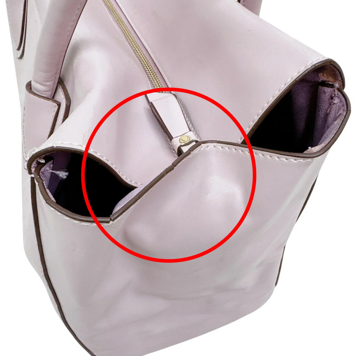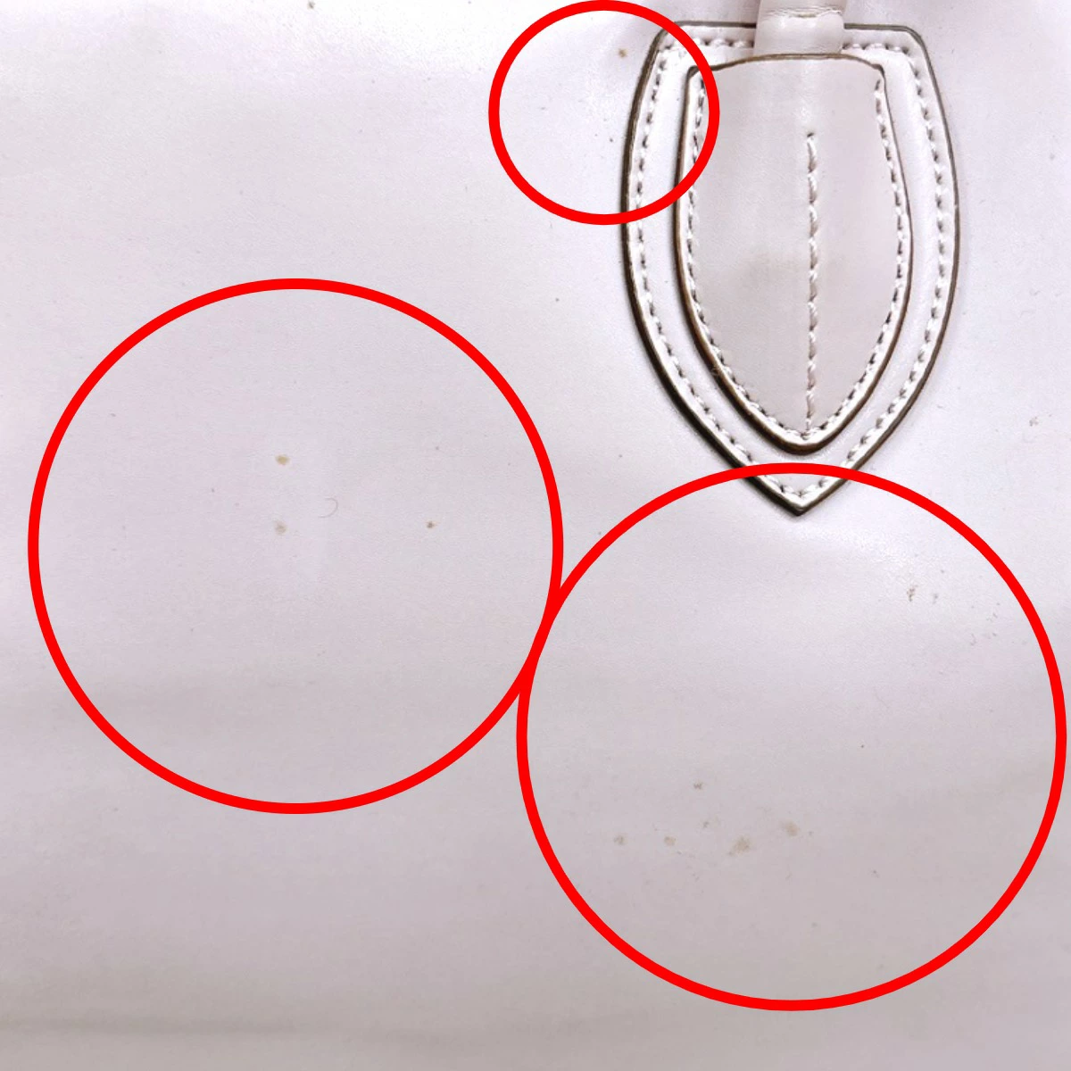 | 外側 | ランク:AB 表面:キズ、小キズ、汚れ、スレ、亀裂 切り替えし部分:小キズ、汚れ、スレ、シワ ハンドル・ストラップ:亀裂 コーナー:亀裂 表面や角、底面にスレや汚れがあります(画像5〜7枚目参照) 持ち手にヒビあります(画像9枚目参照) 表面・側面に汚れがあります(画像10〜12、15〜16枚目参照) 上部角にヒビあります(画像13〜14・17〜18枚目) |