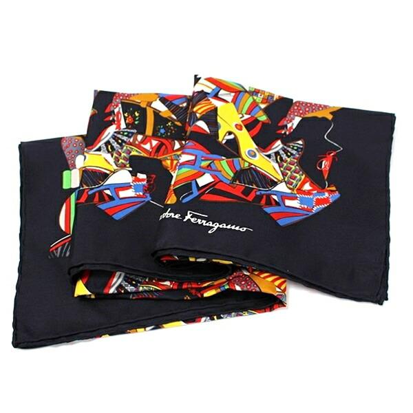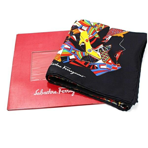 商品名 サルバトーレフェラガモ スカーフ パンプス柄 ブラック×マルチカラー 中古 Aランク Salvatore Ferragamo