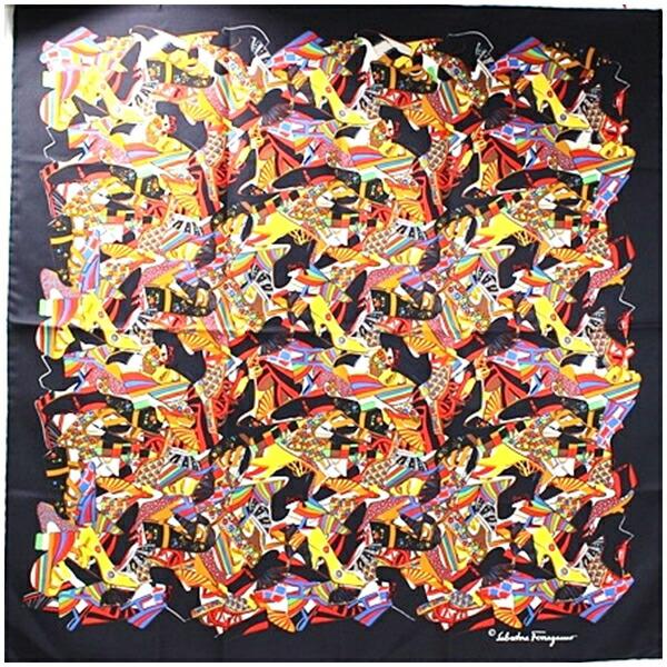 商品名サルバトーレフェラガモ スカーフ パンプス柄 ブラック×マルチカラー 中古 Aランク Salvatore Ferragamo