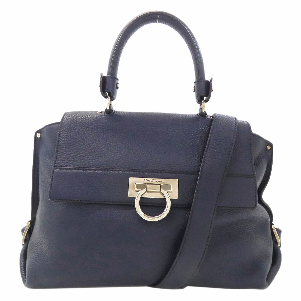 レディースハンドバッグSalvatore Ferragamoカラー:ネイビー系レザーコンディションABランク