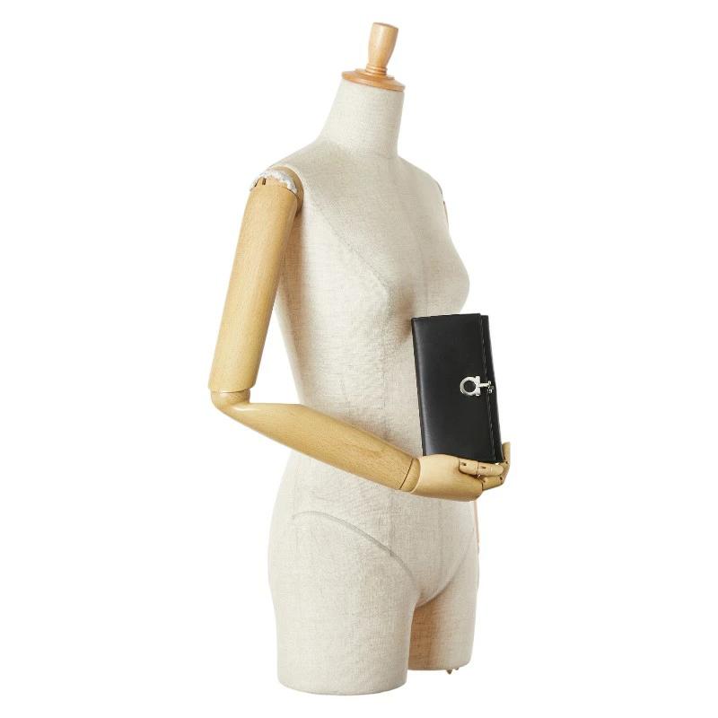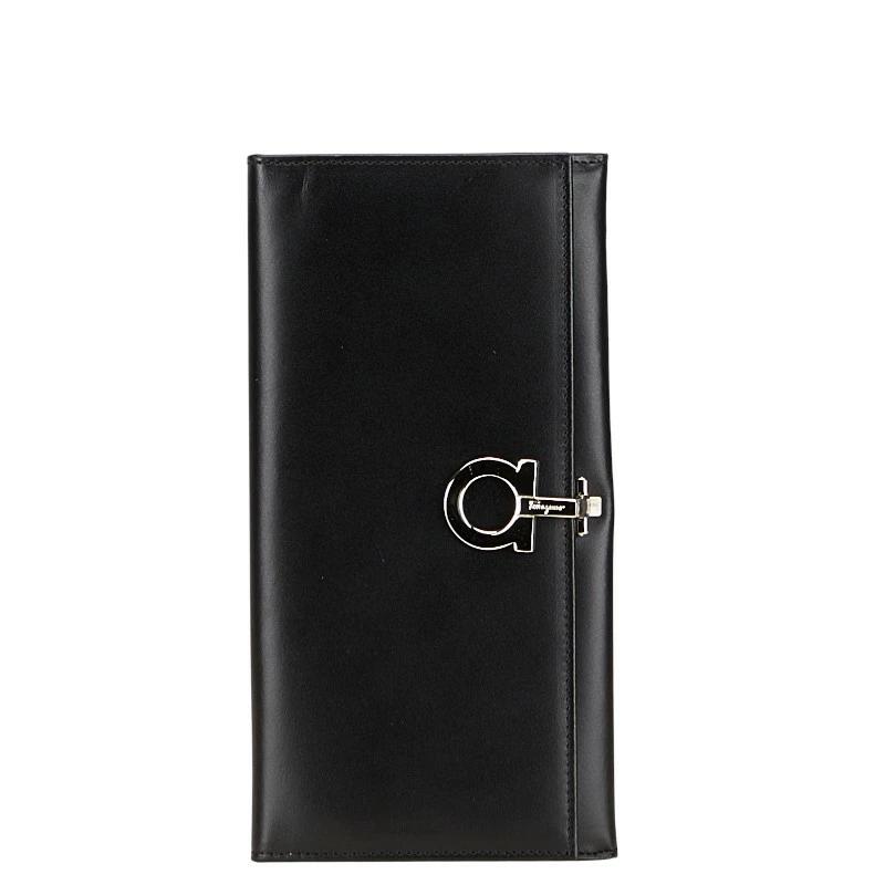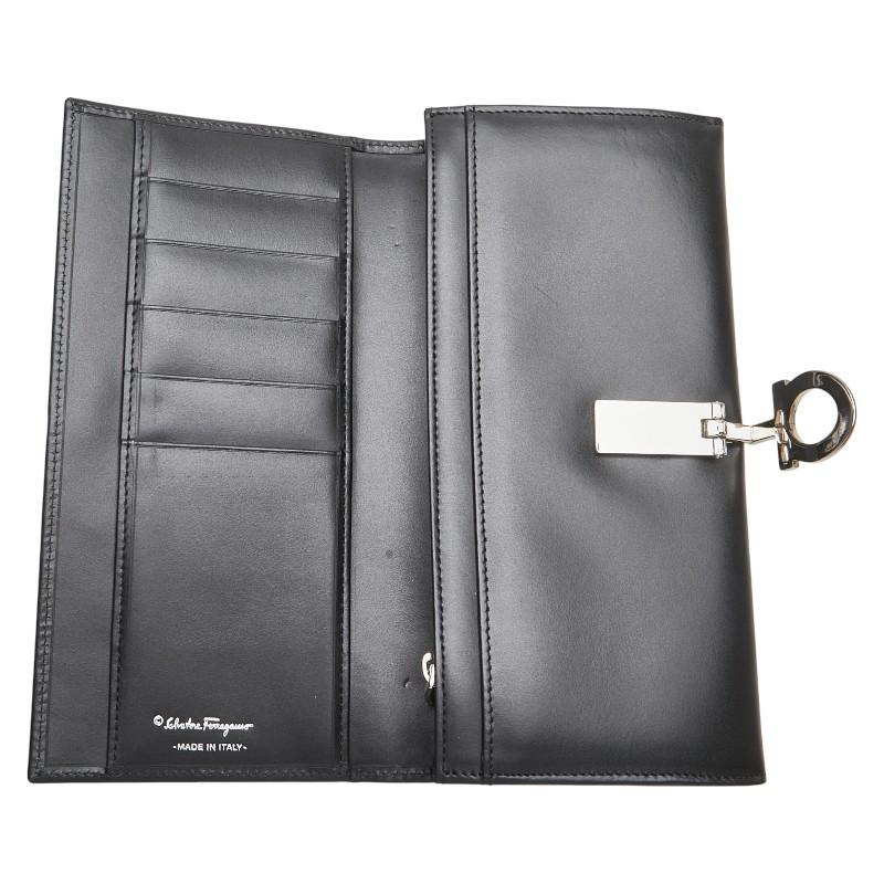 Pre-owned Salvatore Ferragamo Gancini Long Wallet AQ-220107 Black Leather Women's Salvatore Ferragamo