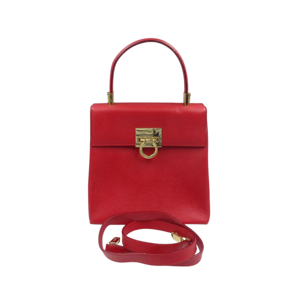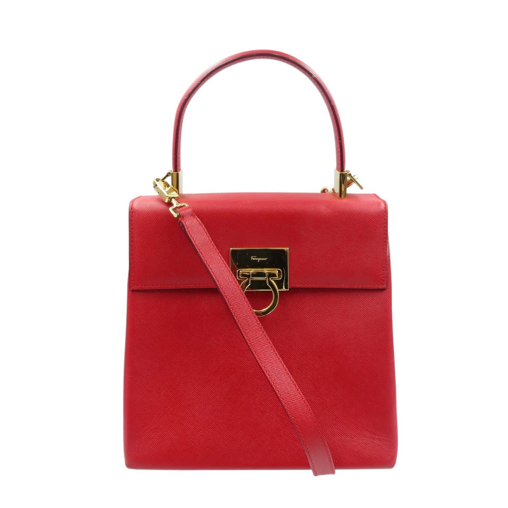 サルヴァトーレフェラガモ ガンチーニ AQ-21 0160 レザー ゴールド金具 レッド 2WAY ハンドバッグ ショルダーバッグ 1028【中古】Salvatore Ferragamo