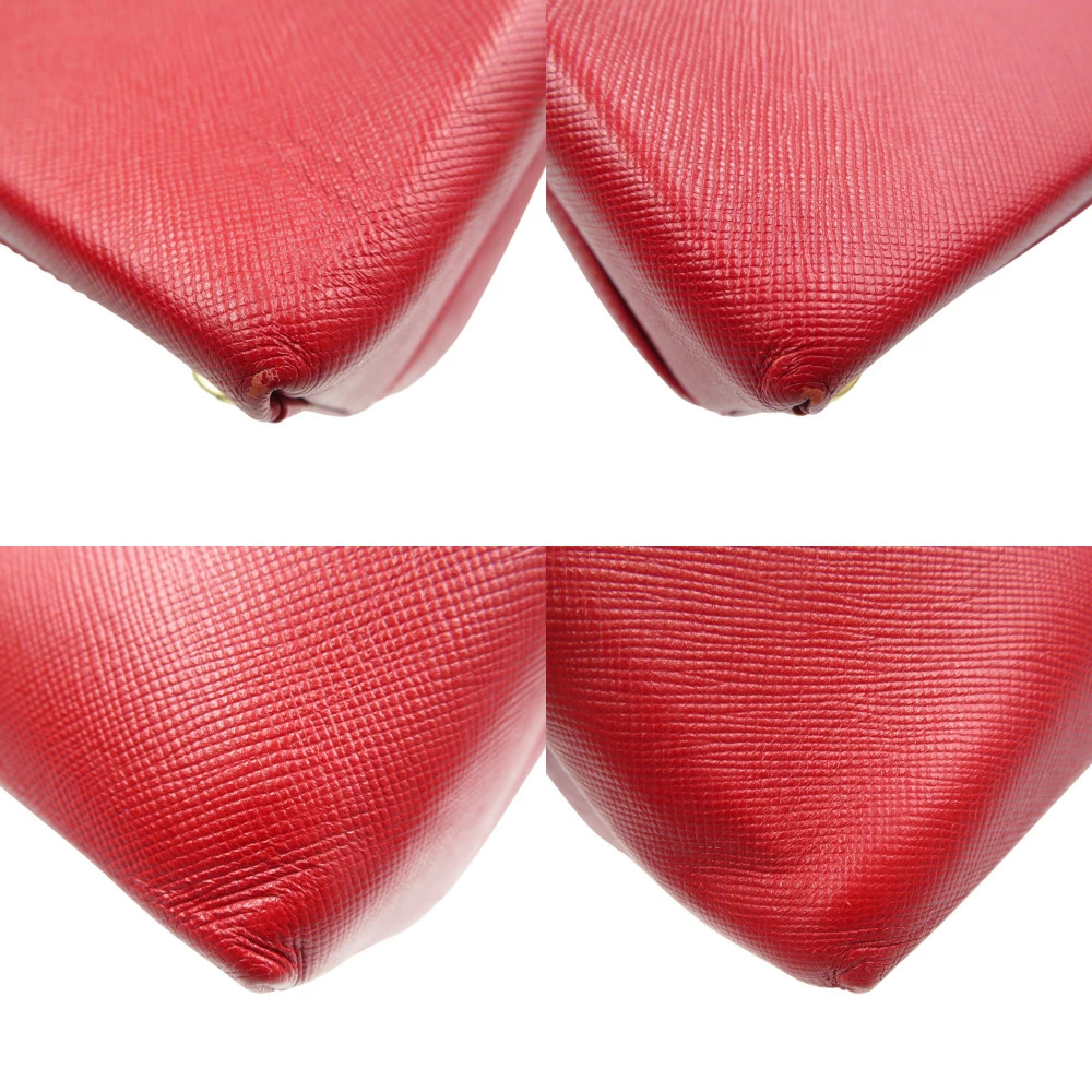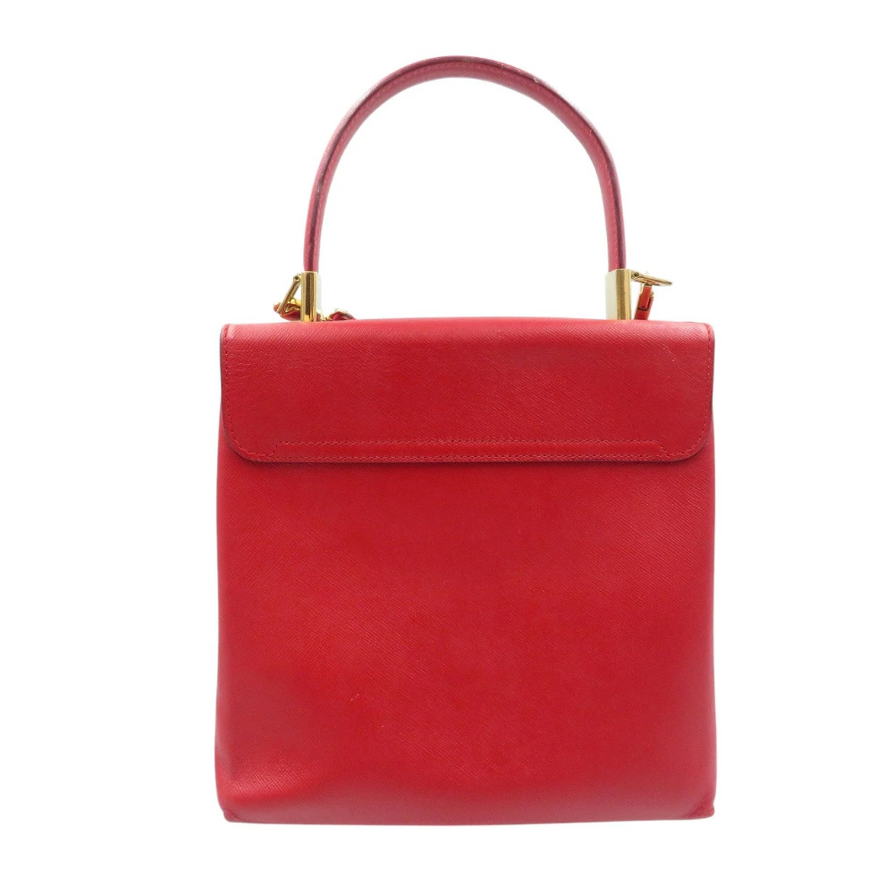 Pre-owned Salvatore Ferragamo Gancini AQ-21 0160 leather bag with gold hardware in red. 2-way handbag/shoulder bag, model 1028.