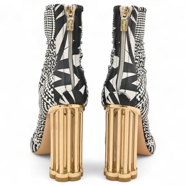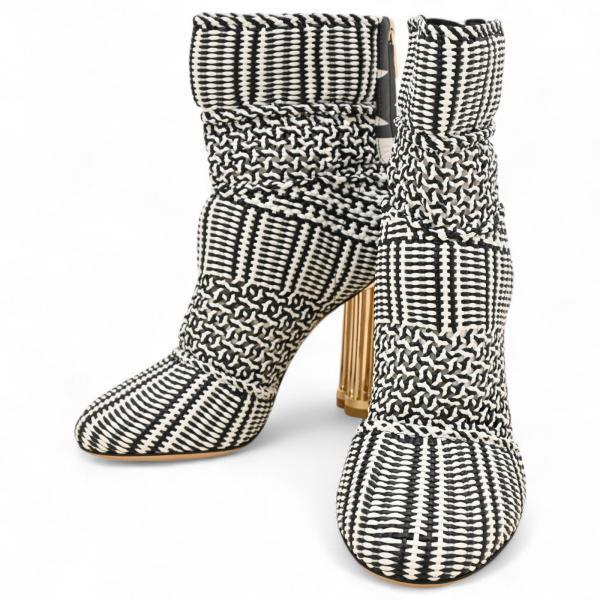 ーーーーーーーブランド 美品 Salvatore Ferragamoモノトーン ブーティ 靴 シューズバックジップ ハイヒール 白黒レディース 女性 ギフト プレゼント贈り物 クリスマスーーーーーーー2.98DB-80