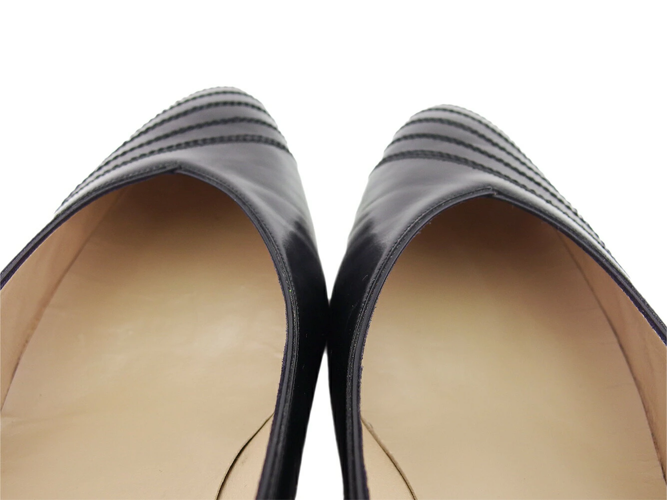 [24% OFF Coupon] Salvatore Ferragamo Stitch #7 V-Cut Almond Toe Pumps Black Women's Pre-owned Salvatore Ferragamo