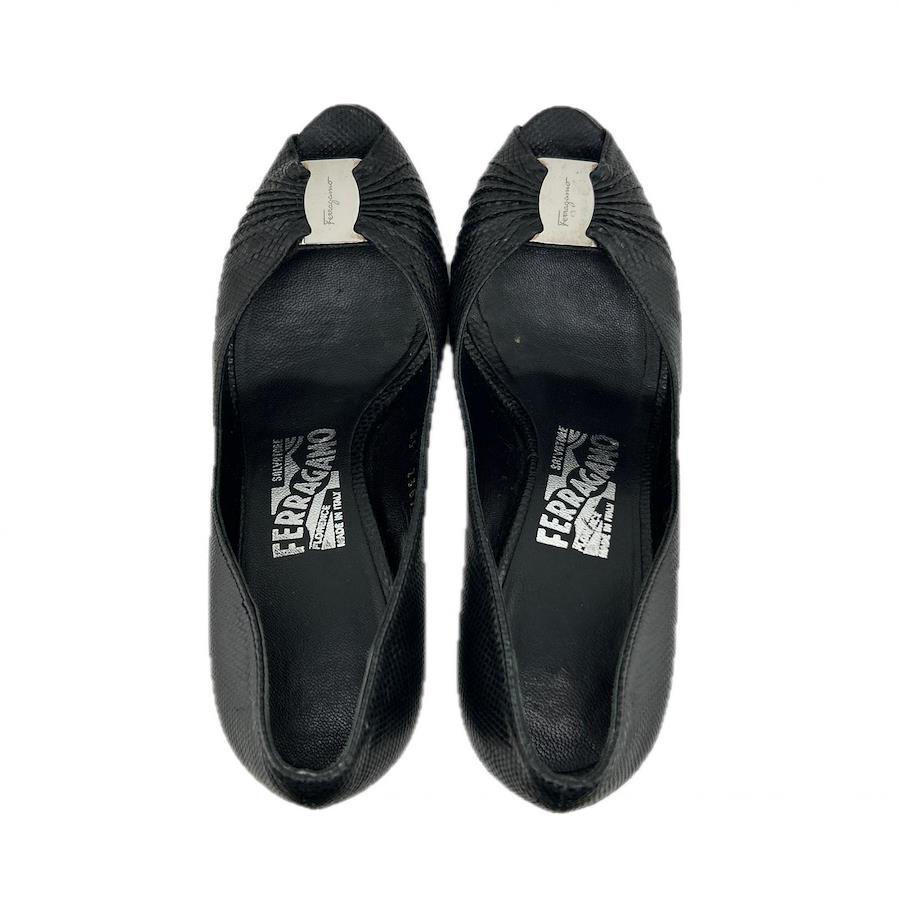 | スタッフコメント | サルヴァトーレ フェラガモ Salvatore Ferragamo ヴァラリボン オープントゥ パンプス ブラック エレガントで上品なデザインが魅力のフェラガモ定番パンプスです。 フロントにブランドを象徴するメタルプレート付きヴァラリボンがあしらわれ、クラシカルな印象を演出。シンプルながら華やかさのあるデザインで、パーティーやフォーマルシーンはもちろん、オフィスやデイリーにも合わせやすい一足です。 上質なレザーを使用し、履き心地にも定評のあるフェラガモならではのクオリティ。長時間履いても快適で、幅広いシーンで活躍します。 |