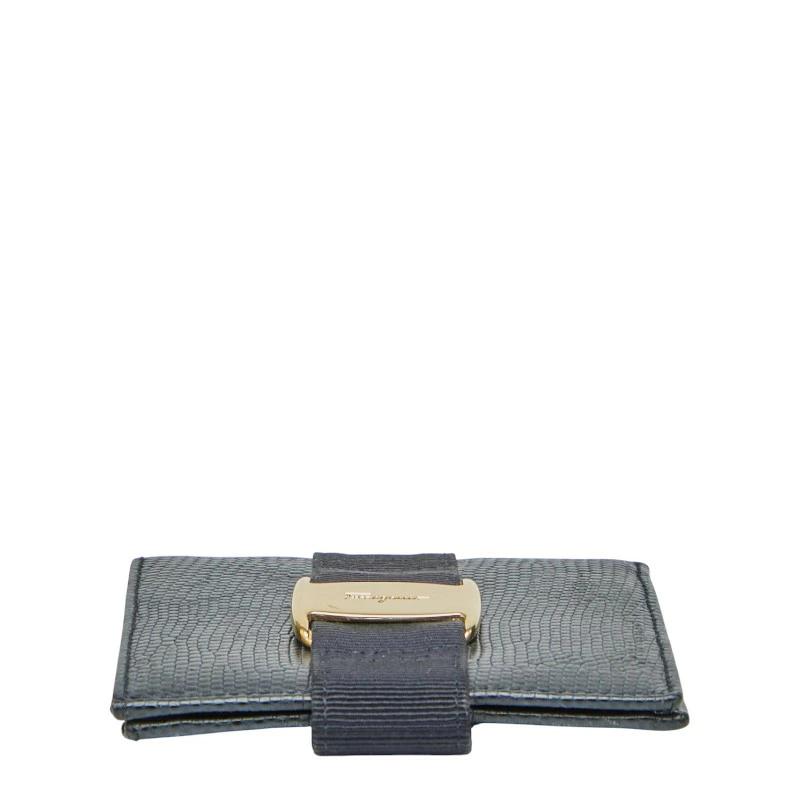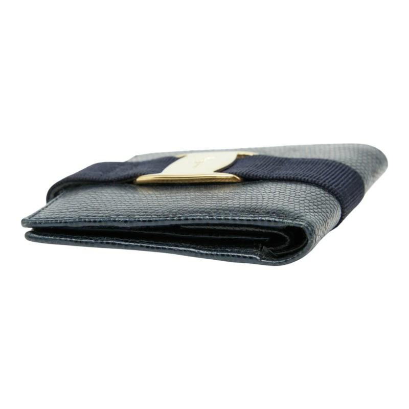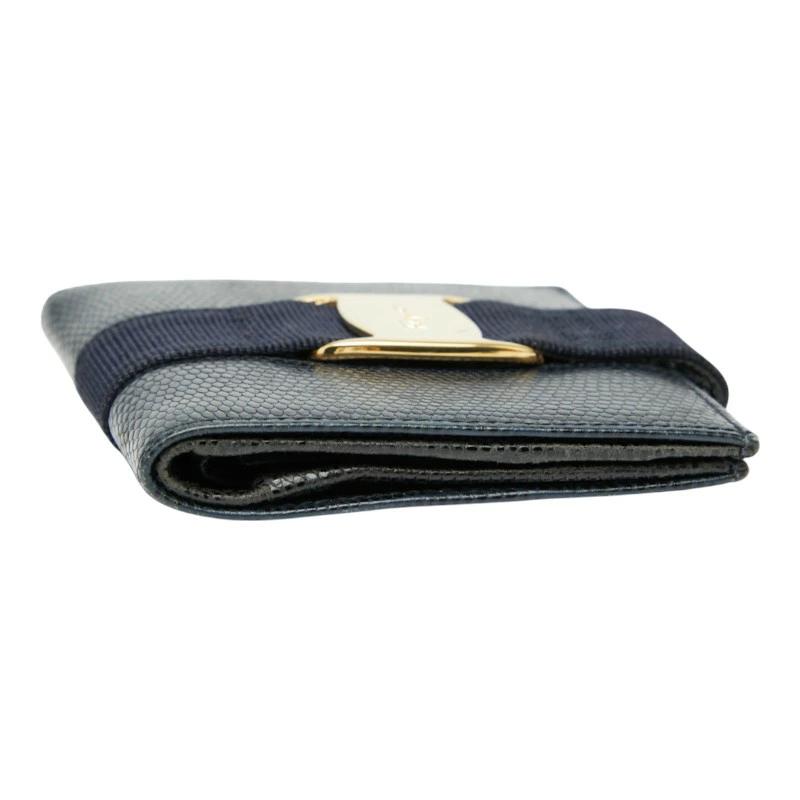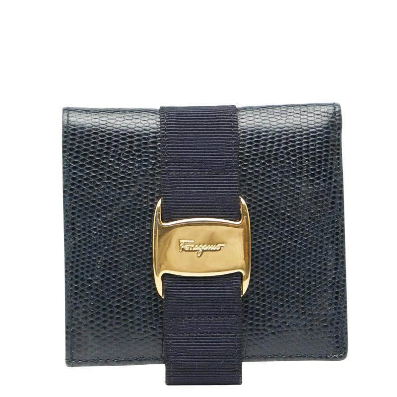 Pre-owned Salvatore Ferragamo Vara Ribbon Bifold Wallet in Navy Leather for Women
