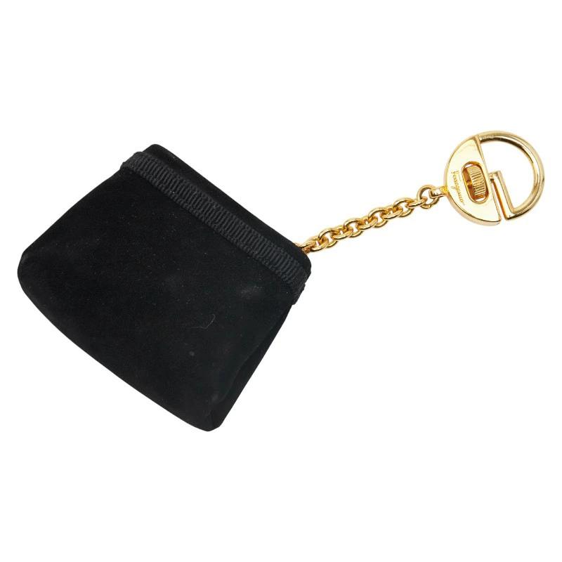 Pre-owned Salvatore Ferragamo Vara bag charm keychain in black and gold plated. Women's sweatshirt.