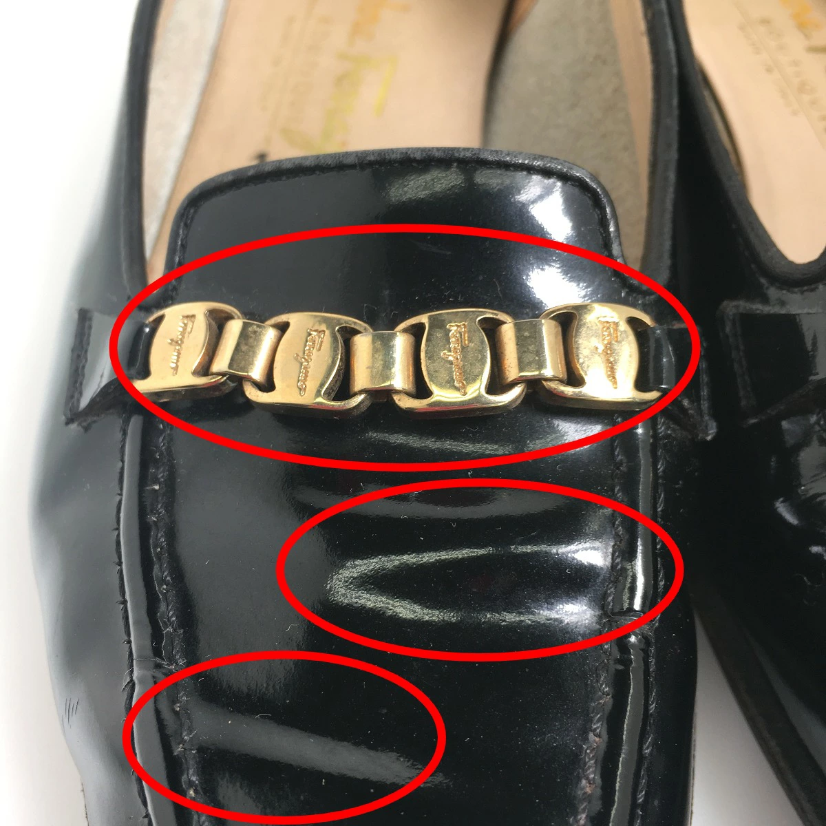 | 外側 | ランク:B 表面:汚れ、スレ、シワ 表面にスレがあり(画像7~9枚目参照) 表面にシワがあり(画像10,11枚目参照) 底面に使用感あり(画像12枚目参照) |
