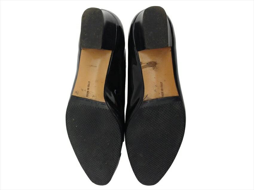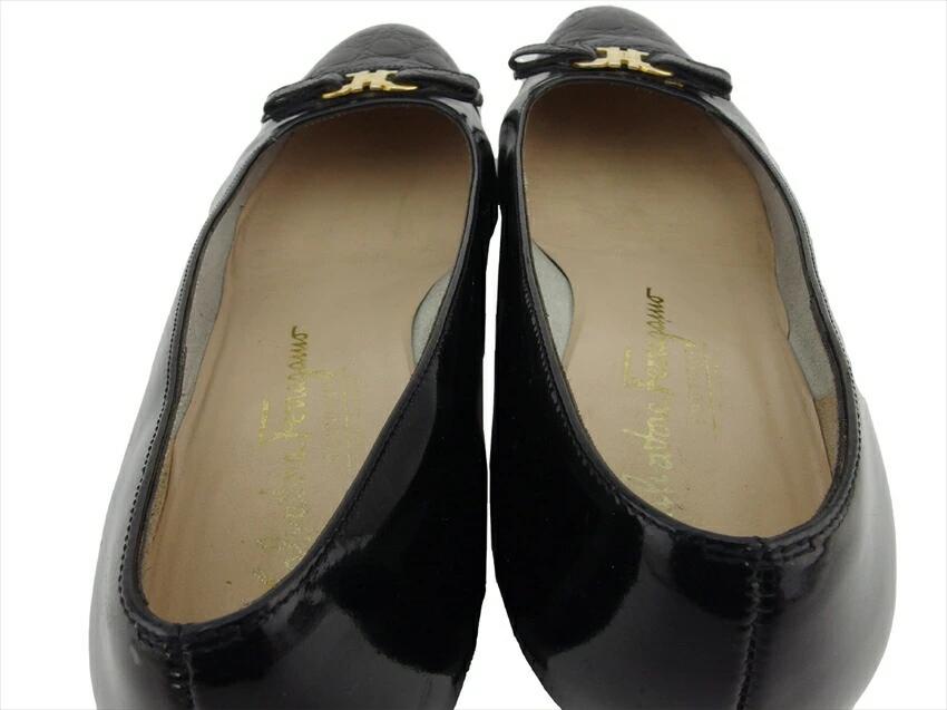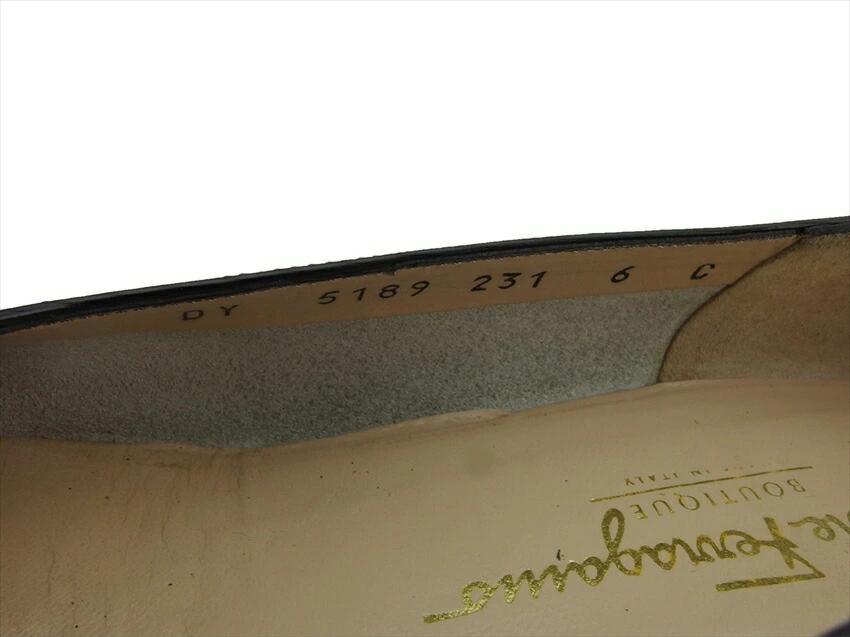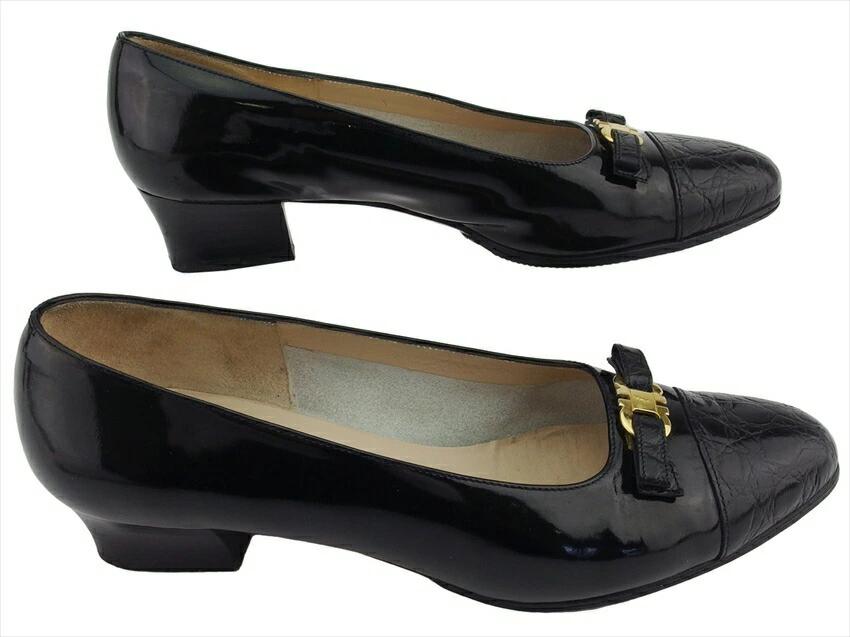 [24% OFF Coupon] Salvatore Ferragamo Gancini Pumps #6C Ribbon Round Toe Black Gold Men's Pre-owned