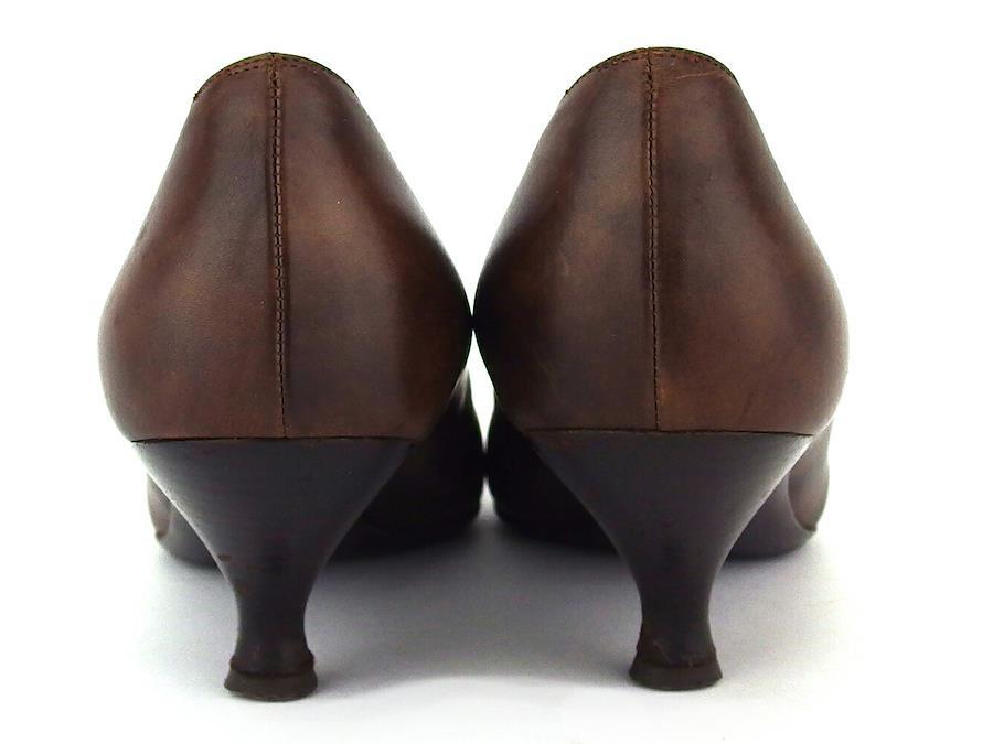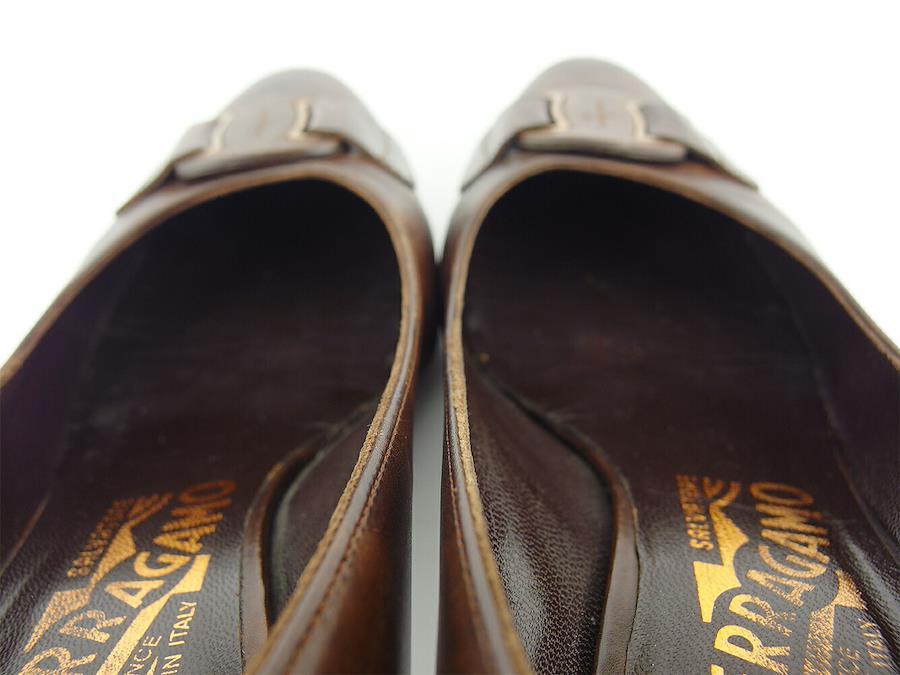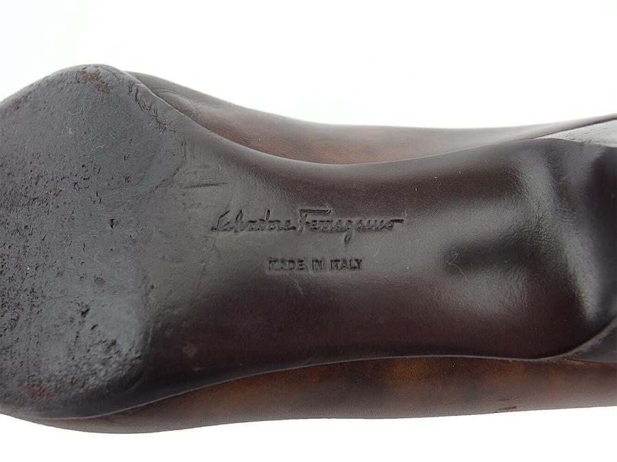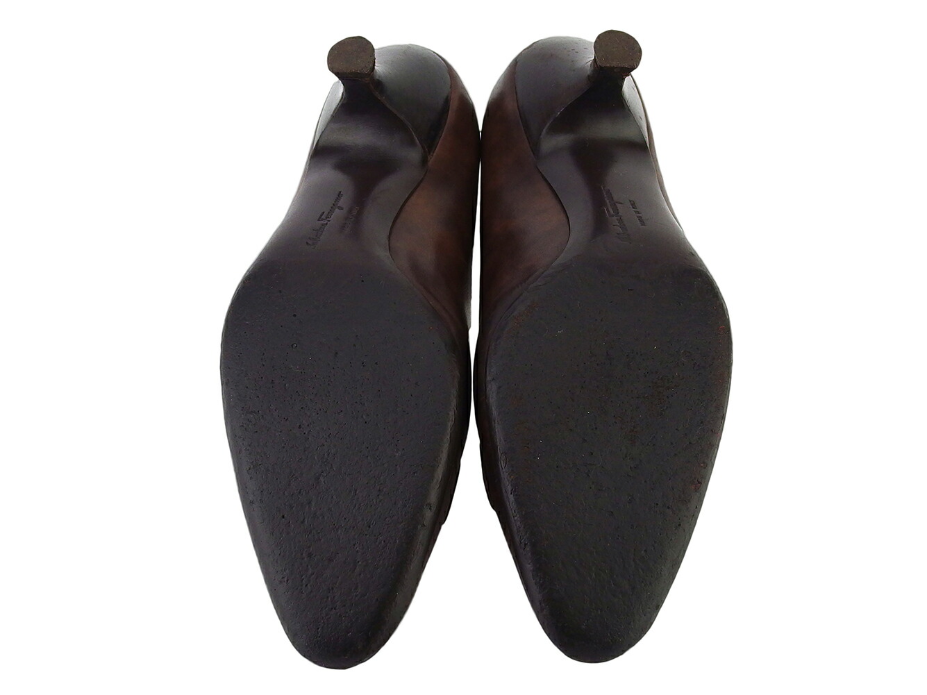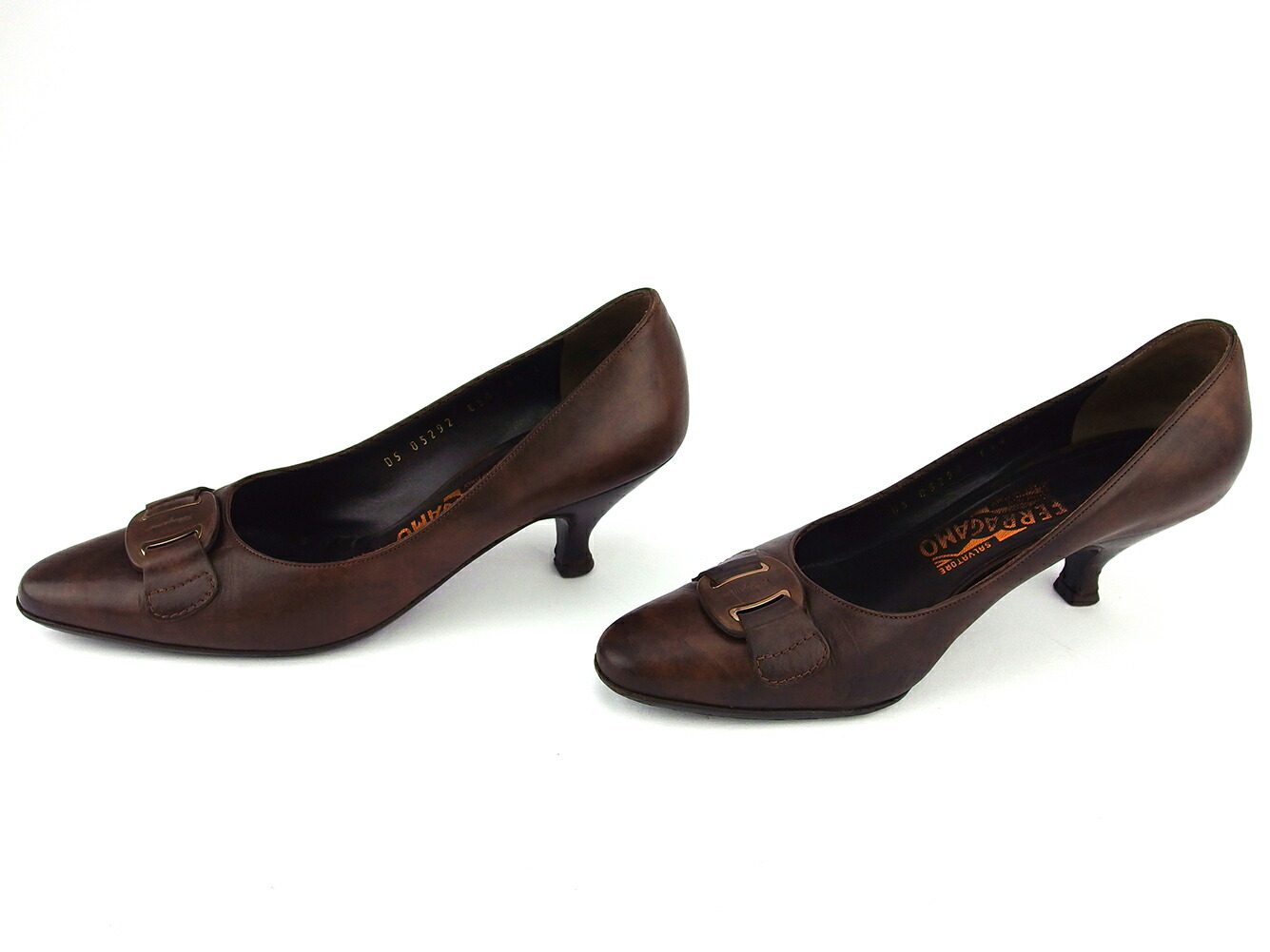 Pre-owned Salvatore Ferragamo Vara #6 Half C Round Toe Pumps in Brown and Gold.