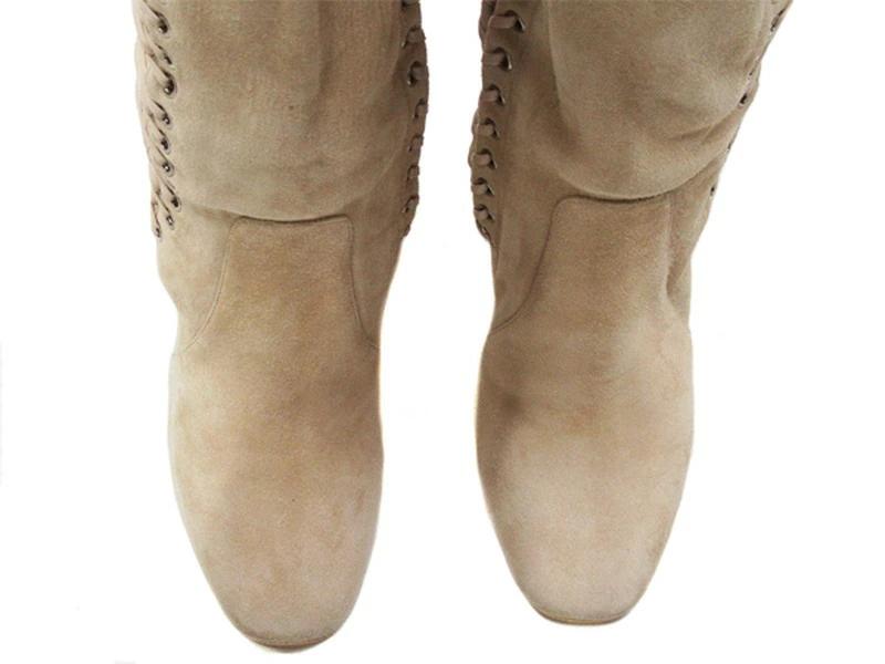 | 備考 | 表記サイズ:4ハーフ ソール幅:約7cm ソール全長:約23.5cm ヒール:約11cm 筒丈(ヒールを除く):約50cm〜55cm 履き口(内周):約30cm〜 ※ブーツの為、外側から計測している箇所あり。 メーカー公式サイト公表値参考 (参考日本サイズ:約22.0cm) ※参考日本サイズはあくまで目安です。メーカーによって、または足の形、幅などによってサイズは微妙に違ってきます。あくまで参考程度にご覧下さい。 |