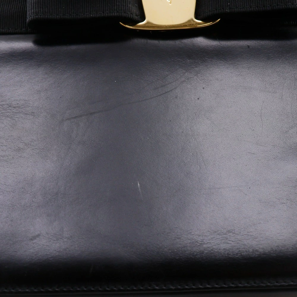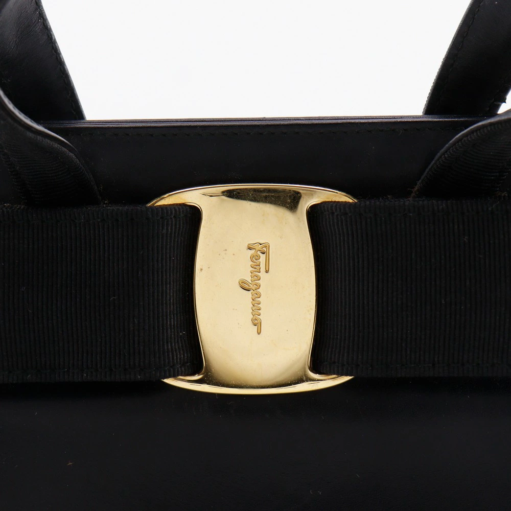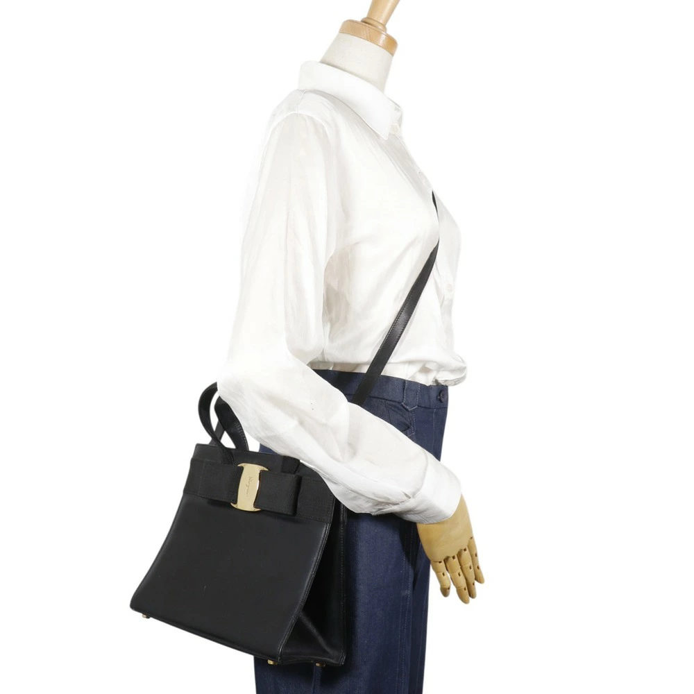 [Double Points & Discount Coupon Available from 8 PM on the 4th] Salvatore Ferragamo Vara Ribbon Handbag, 2-Way Shoulder Bag BA21 4178, Black Calfskin, Crossbody, Shoulder, or Handbag, 2-Way, A5 Size, Magnetic closure, Women's [Pre-owned]