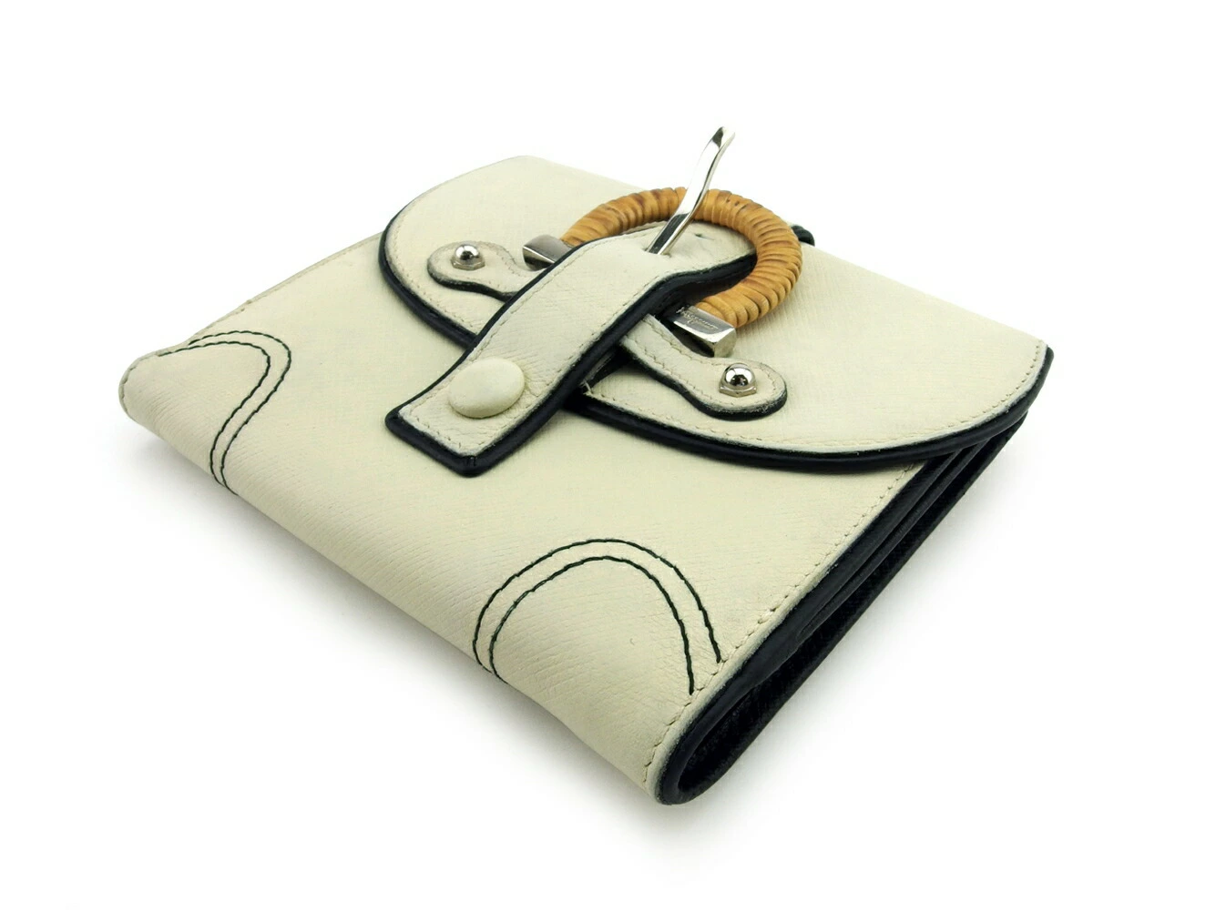 [24% OFF Coupon] Salvatore Ferragamo Bifold Wallet, Ivory x Black, Men's, Pre-owned