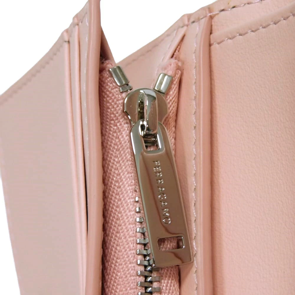| スムースレザーににフェラガモのガンチーニメタルがあしらわれた「ハグ コンパクトウォレット」スナップ式二つ折り財布です。 |