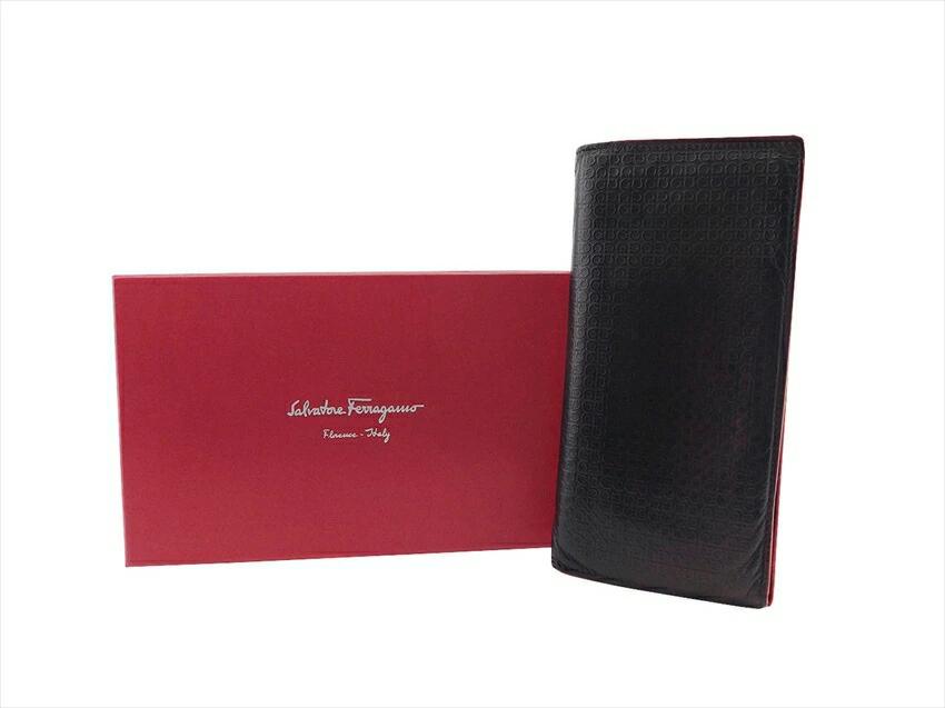[24% OFF Coupon] Salvatore Ferragamo Long Wallet with Gancini Pattern in Black, Red, and Brown. Pre-owned. Men's.