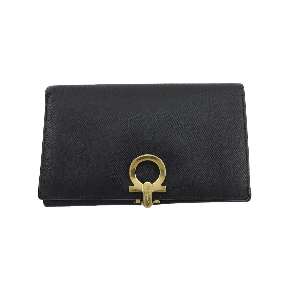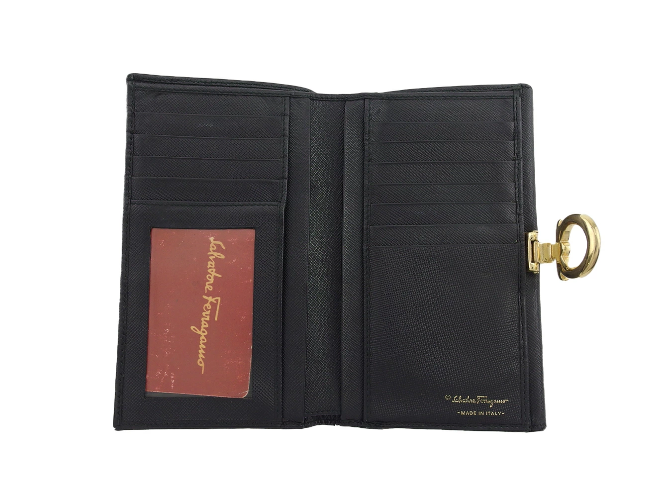 Pre-owned Salvatore Ferragamo Gancini long wallet in black for women.
