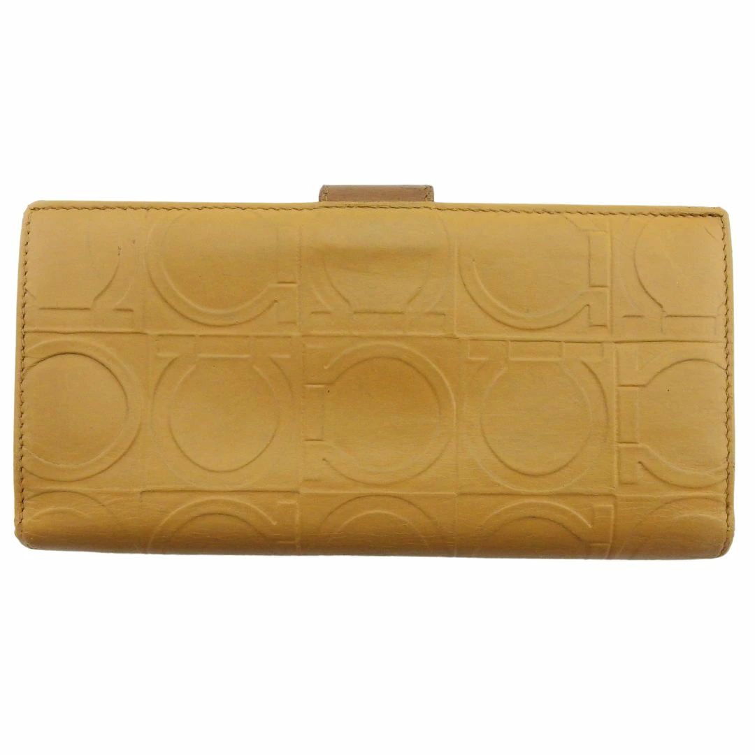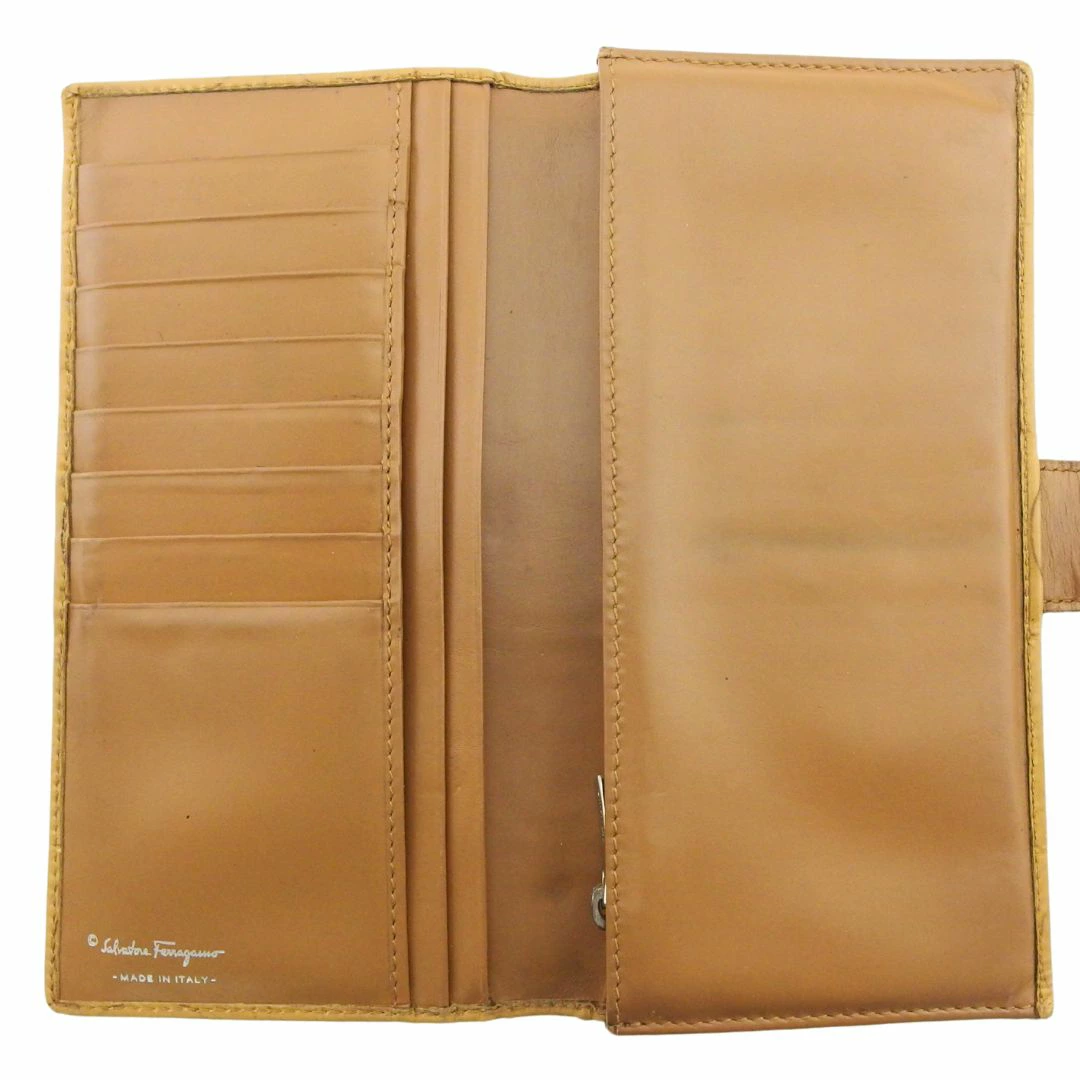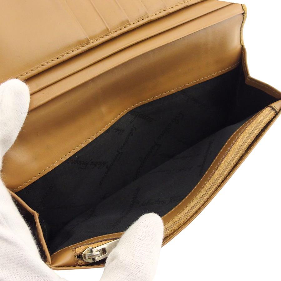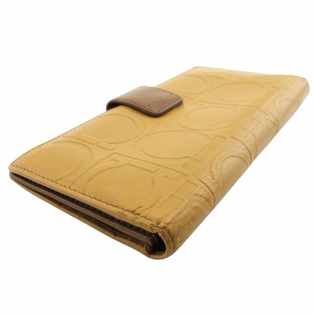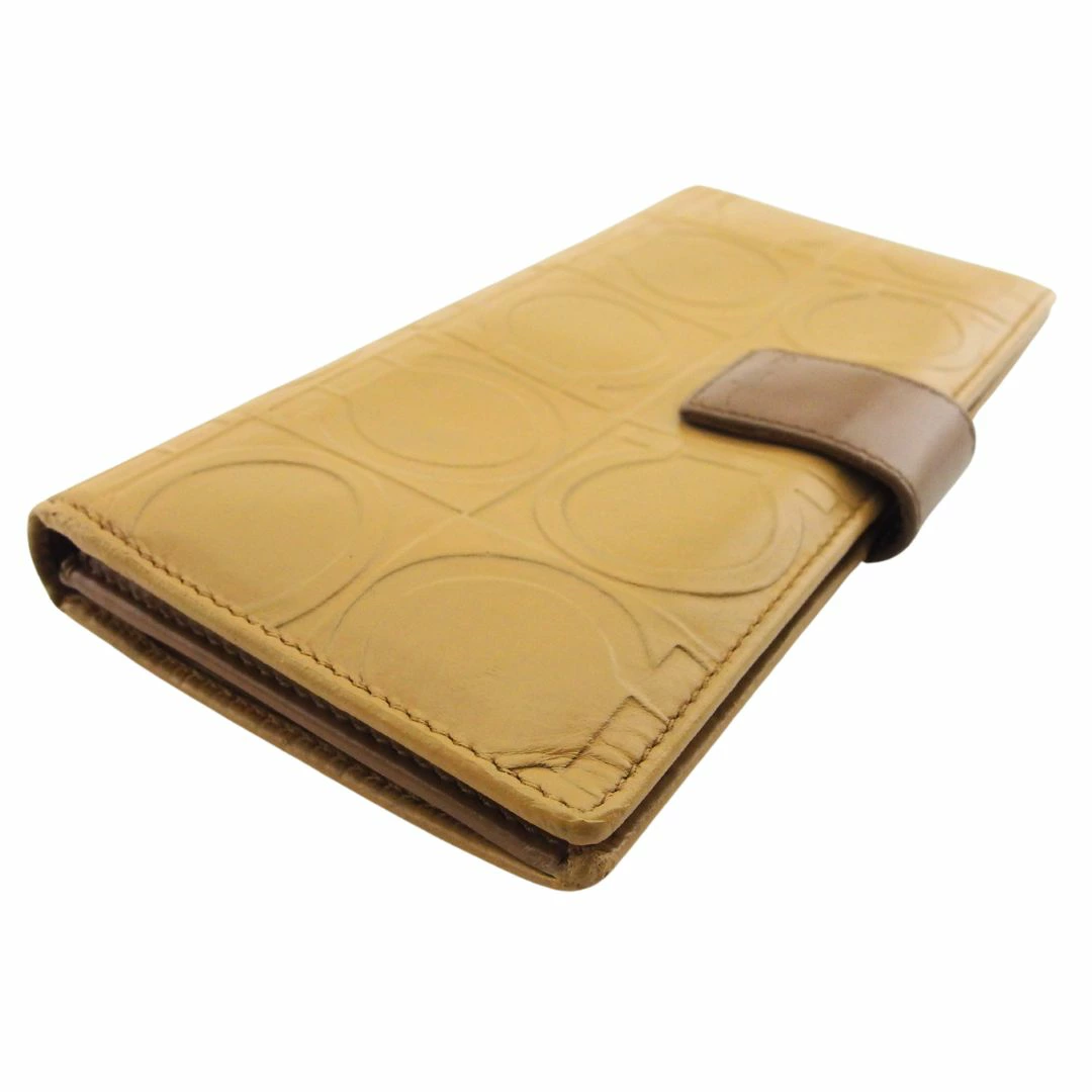 Pre-owned Salvatore Ferragamo Gancini long wallet in beige and brown for women.
