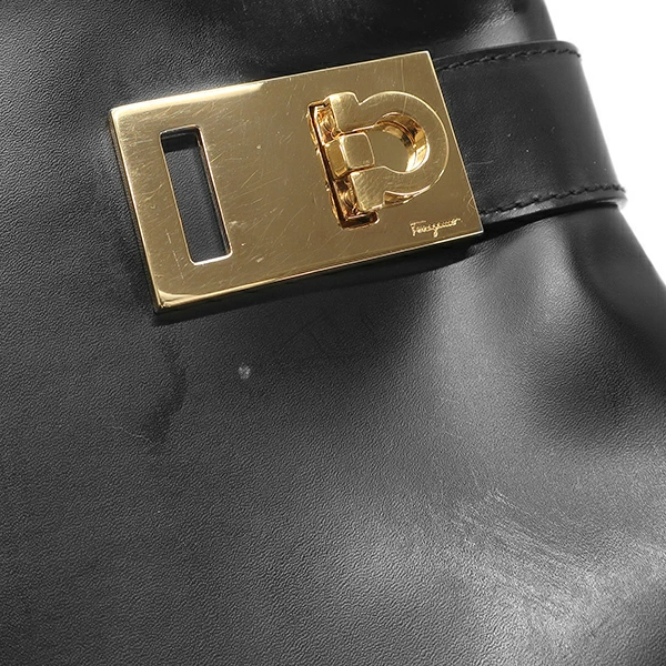 ▲クリックで拡大されますサルヴァトーレ・フェラガモ Salvatore Ferragamo ハンドバッグ ガンチーニ バッグ レザー ブラック 黒 ショルダーストラップ欠品 ゴールド金具 DY210166 レディース 【保存袋】 【中古】