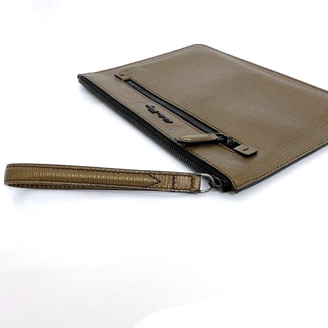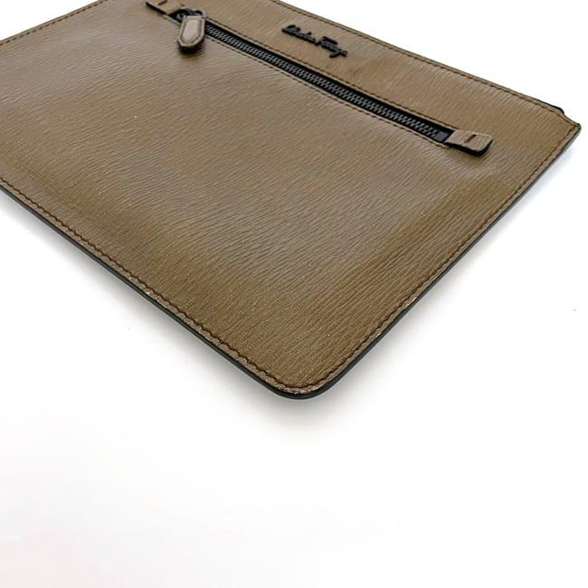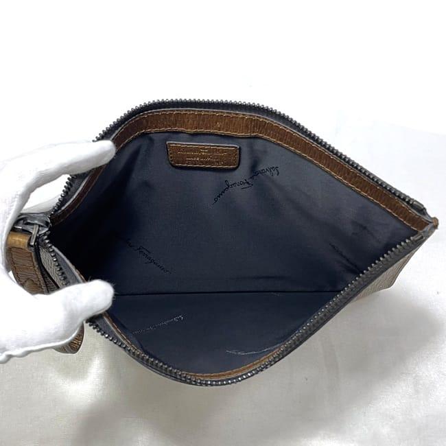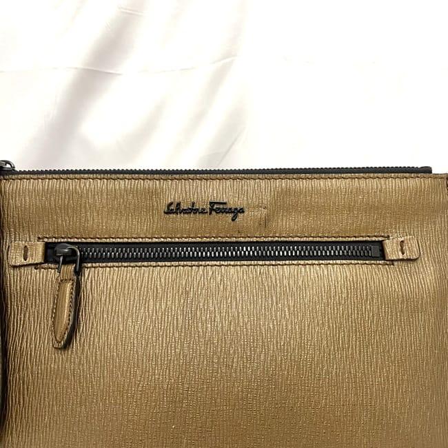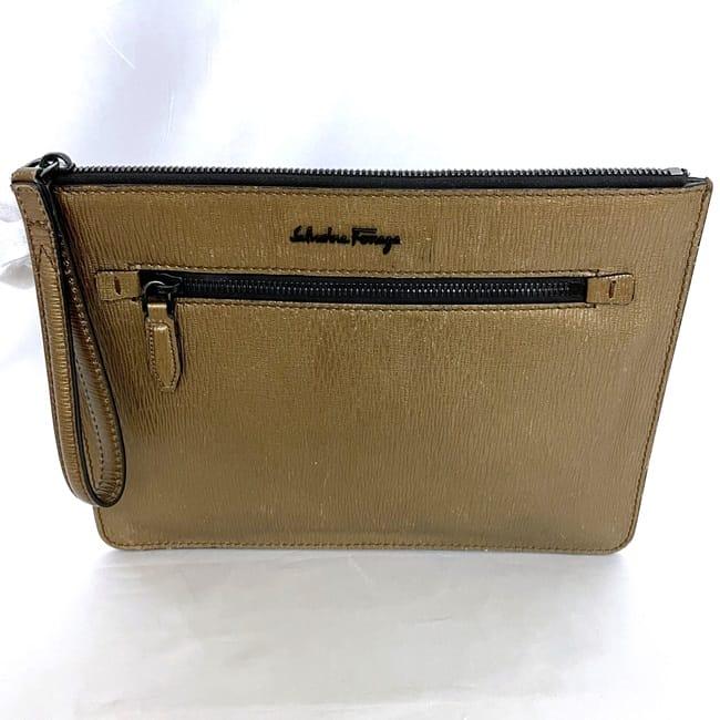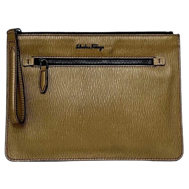 サルヴァトーレ フェラガモ クラッチバッグ ec-23404 ブラウン ゴールド 美品 レザー 中古 FZ-24 A105 Salvatore Ferragamo ハンドバッグ ファスナー シンプル 定番 人気 女性 レディース 薄い 薄型 革 クラッチ 小さい コンパクト 上品 ブランド 本物 鑑定済み