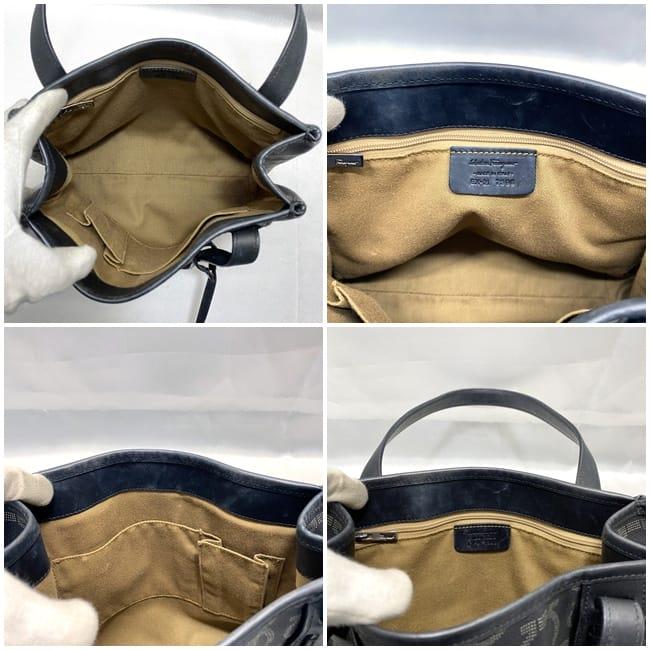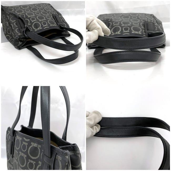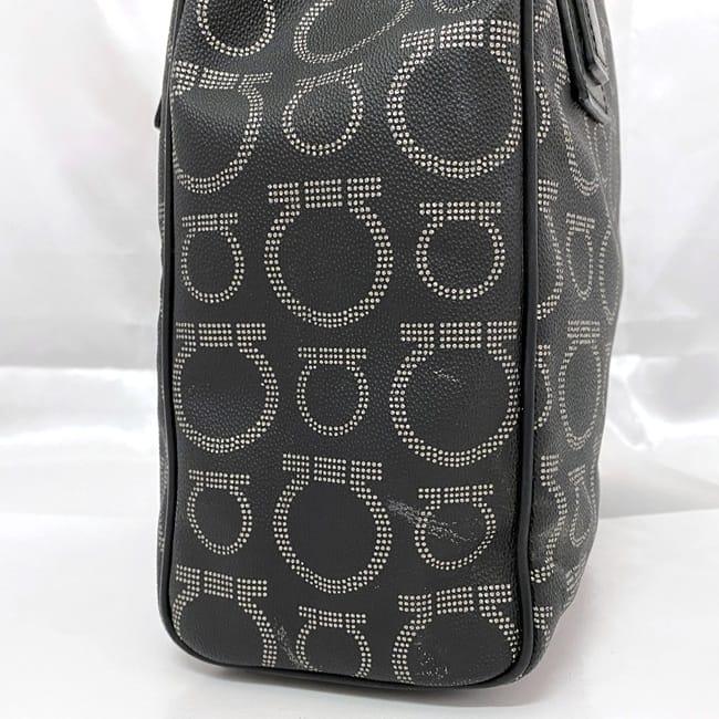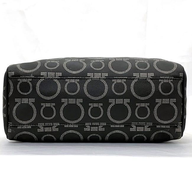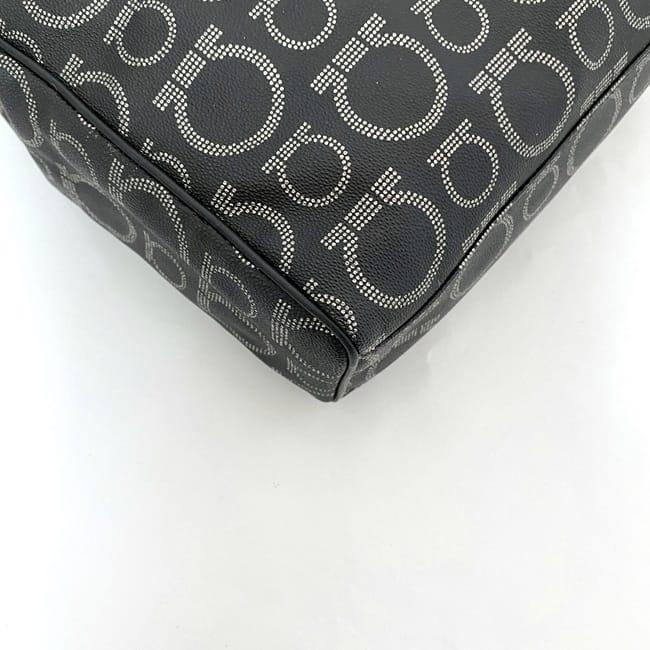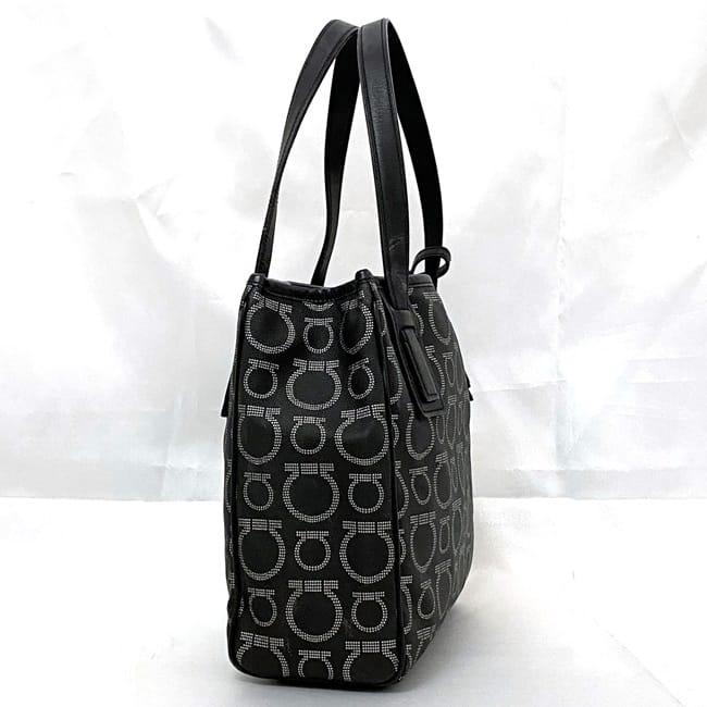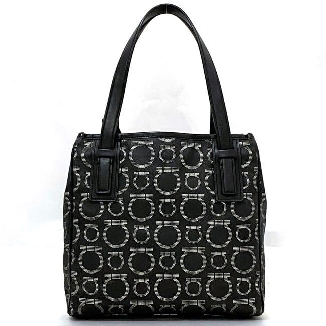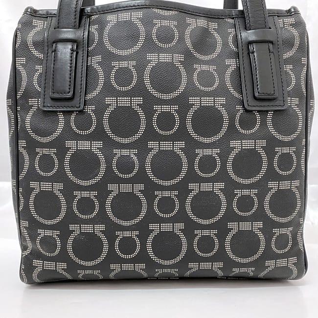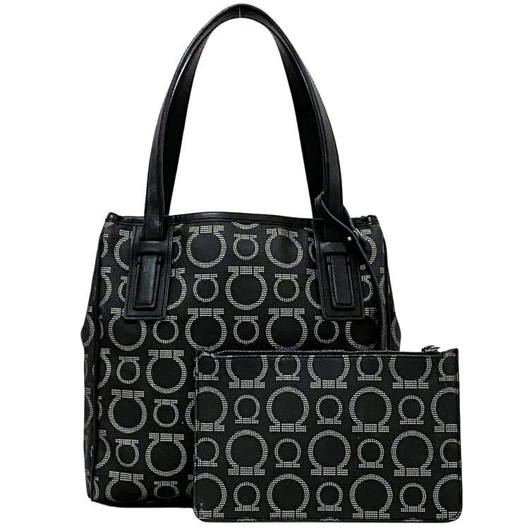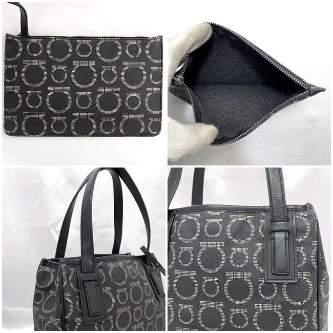 サルヴァトーレ フェラガモ ハンドバッグ ec-22400 ブラック シルバー ガンチーニ EX-21 美品 PVC レザー 中古 7396 Salvatore Ferragamo ポーチ付き ロゴ 総柄 トートバッグ 軽い ミニバッグ 定番 人気 レディース 黒色 トート お洒落 ブランド 本物 鑑定済み