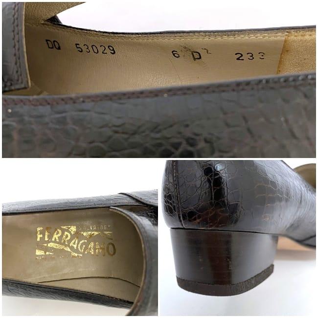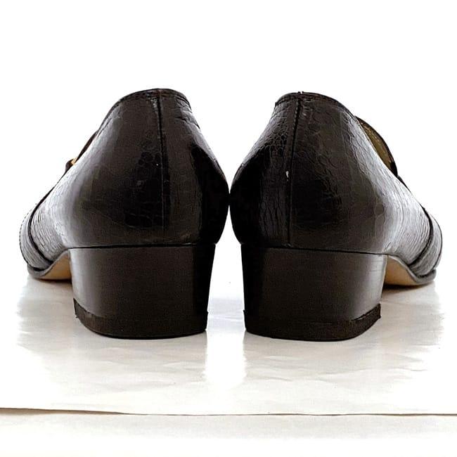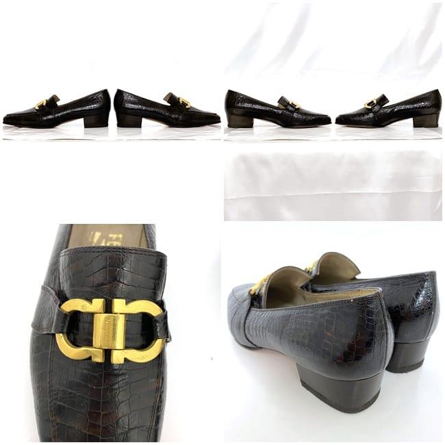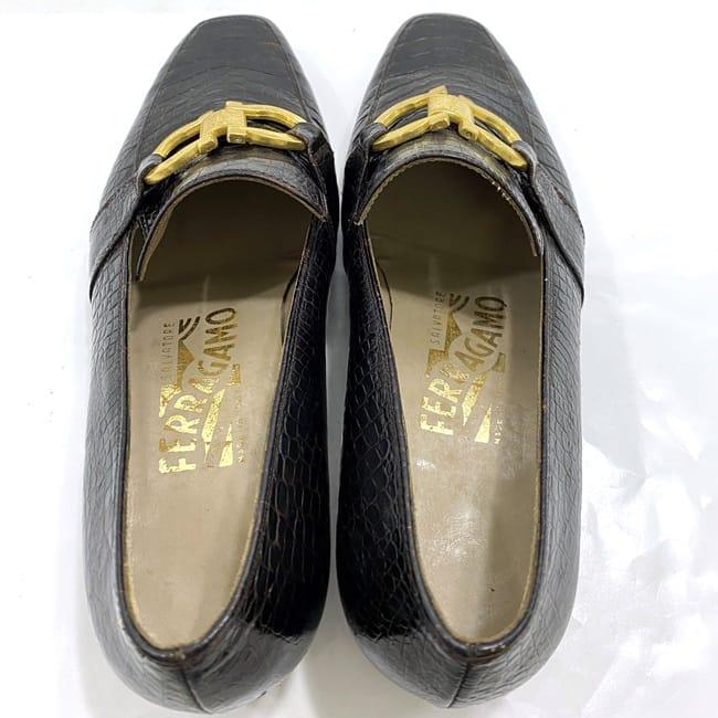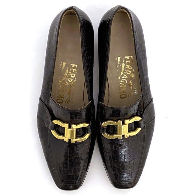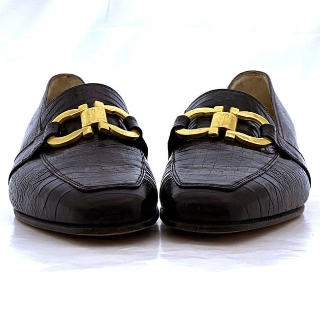 サルヴァトーレ フェラガモ ローファー ec-22364 ダークブラウン ガンチーニ 美品 靴 24.0cm レザー クロコ型押し 中古 Salvatore Ferragamo 金具 ローヒール シューズ レディース ヴィンテージ アパレル ロゴ 定番 人気 靴 シンプル ブランド 本物 鑑定済み