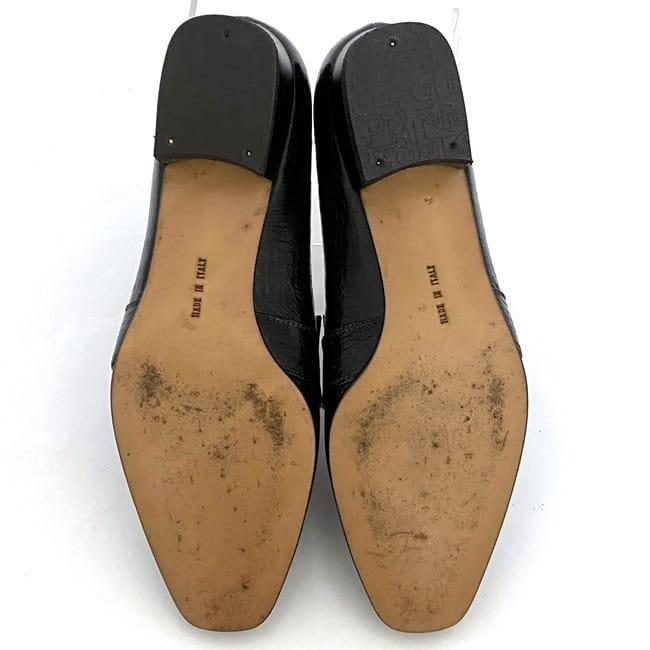 詳細説明:ヒール底社外品に交換済み。金具に小傷、つま先・かかと・ヒールに擦れや傷、内側に汚れやロゴ擦れ、靴底に使用感がございますが比較的綺麗なお品物です。