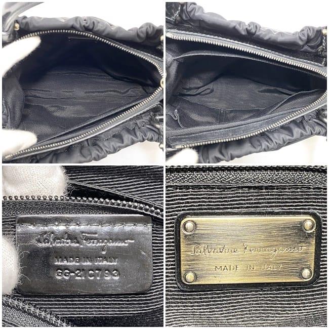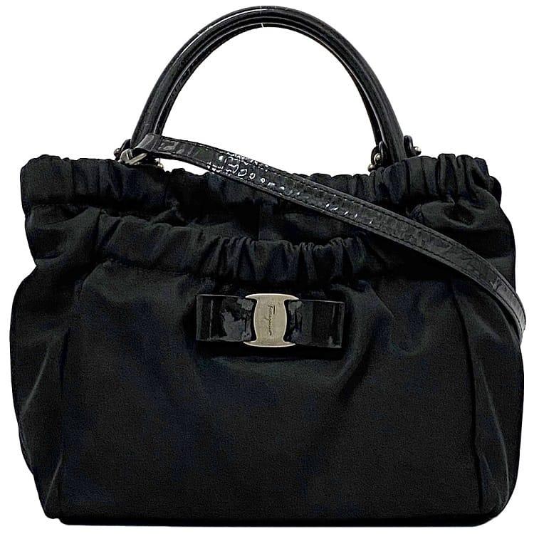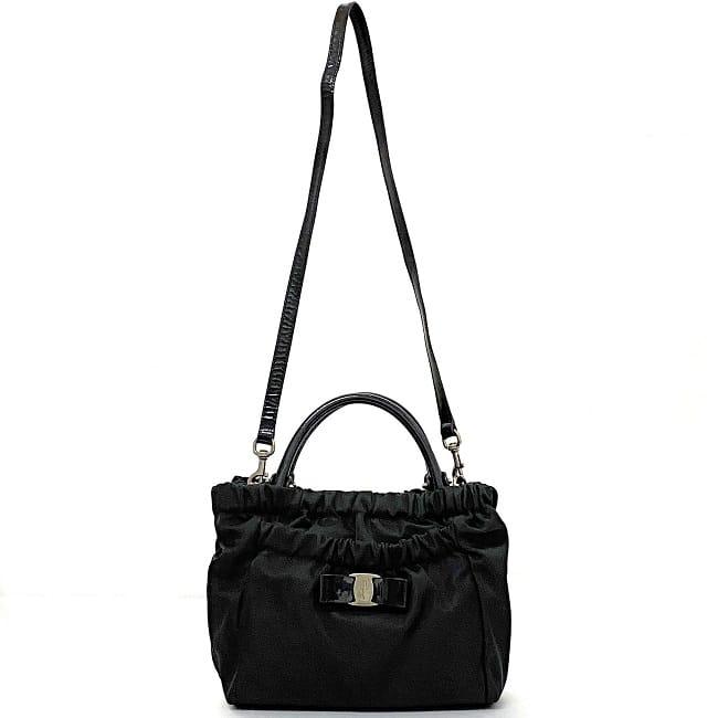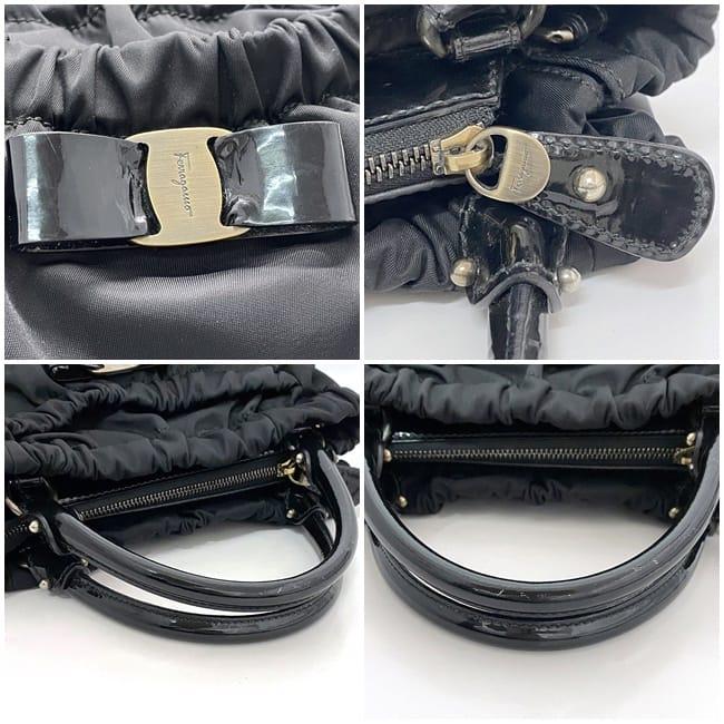 サルヴァトーレ フェラガモ 2way バッグ ec-22602 ブラック ヴァラ 美品 ナイロン エナメル 中古 GG-21 C793 Salvatore Ferragamo リボン 軽い パテント レザー シンプル 黒 人気 定番 お洒落 上品 高級感 シンプル エレガント ブランド 本物 鑑定済み