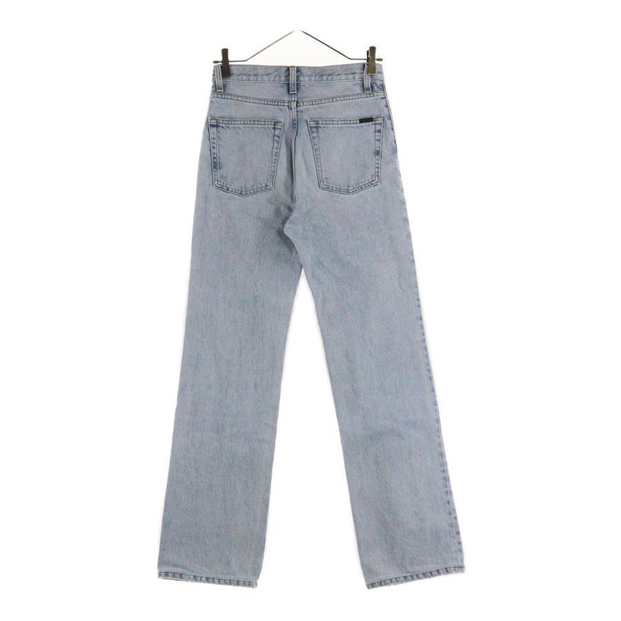 [モデル]ウォッシュ加工 レザーロゴパッチ ストレートデニムパンツ ジーンズ インディゴ 691771