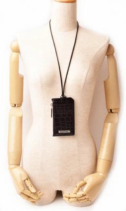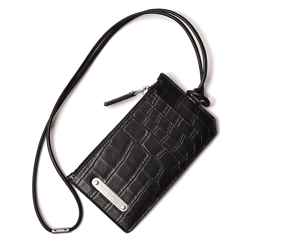 サンローランより、ネックストラップ付のコインケース/カードケースです。