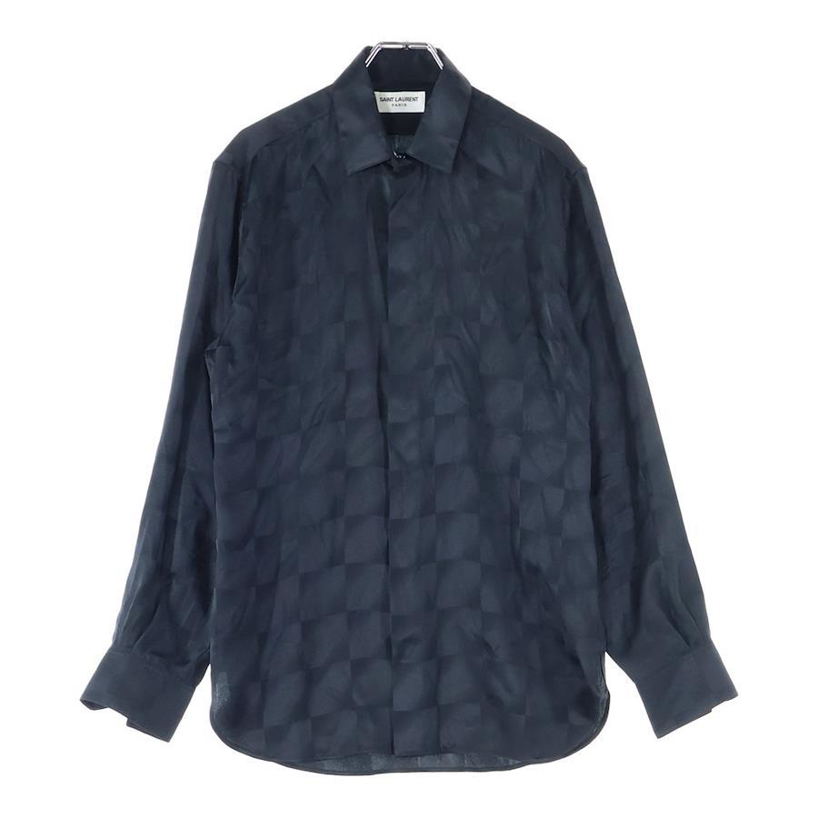 Saint Laurent Paris Block Check Silk Long Sleeve Shirt, Black, 646850 Y1D87, Size 36