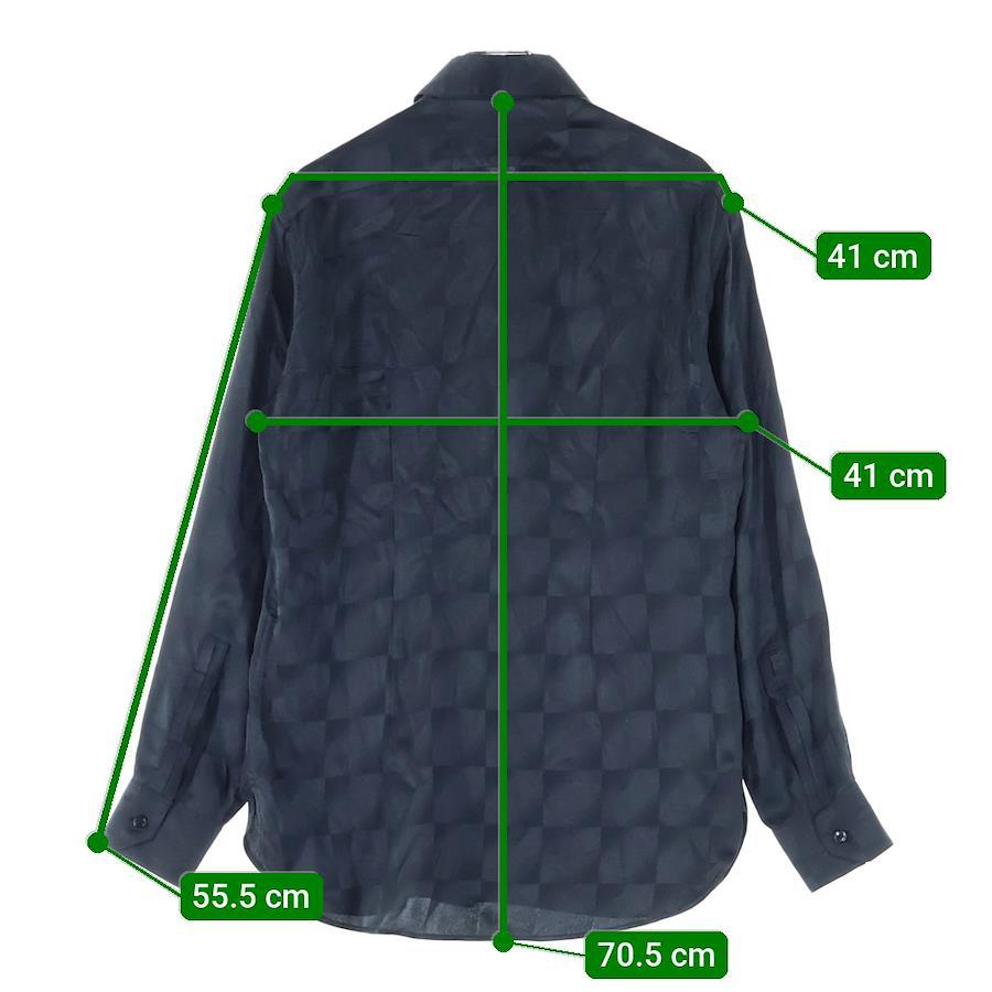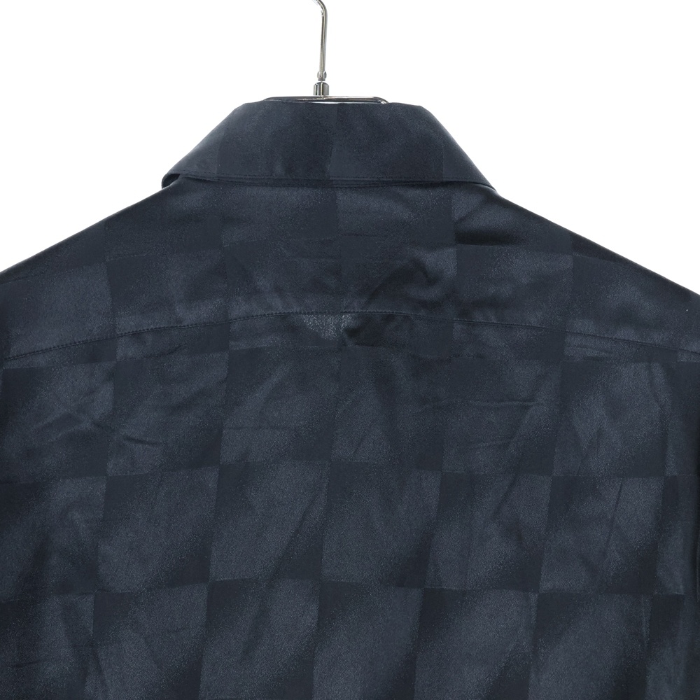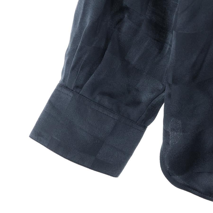 [モデル]ブロックチェック シルク長袖シャツ ブラック 646850 Y1D87