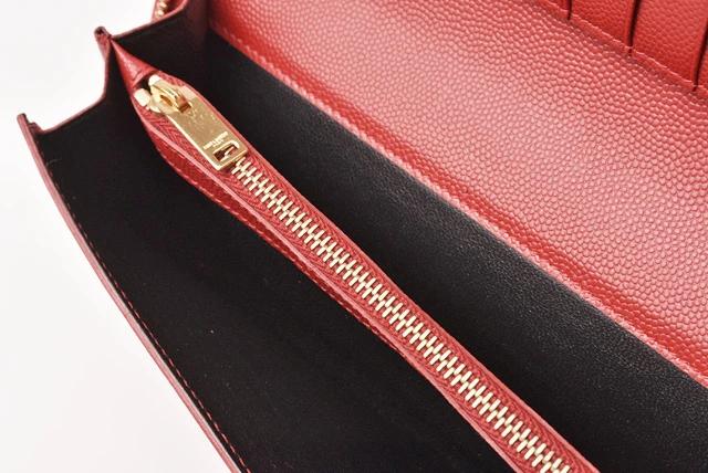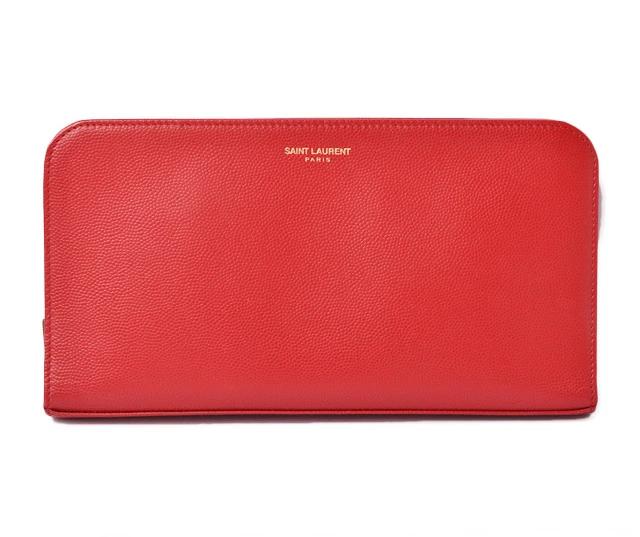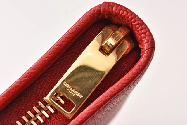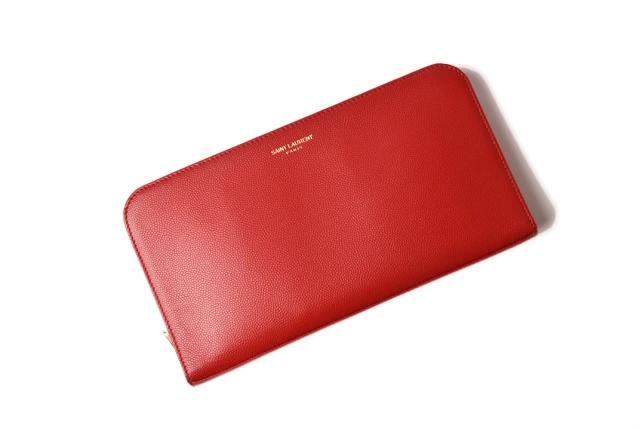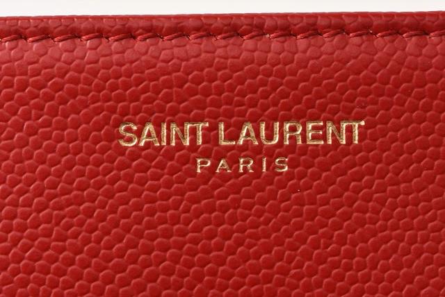 サンローランより、ラウンドファスナー式長財布です。傷、汚れの目立ちにくい型押しレザー素材です。センターには、YSLのロゴが箔押しでデザインされており存在感があります。収納力があり、使いやすい長財布です。内側は、ポケットが充実しており、機能的です!カードポケットが10枚もあり、多くなりがちなカードをすっきり収納できます。