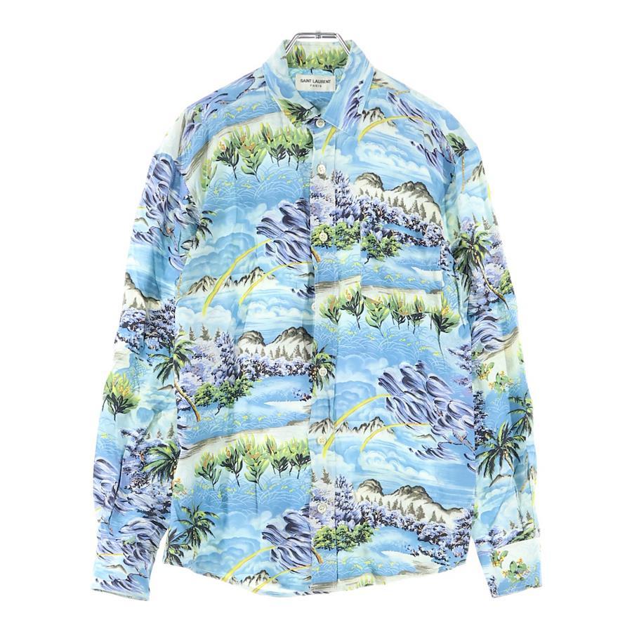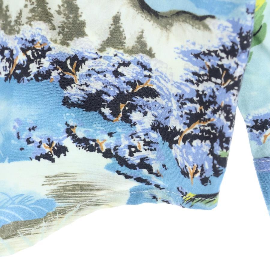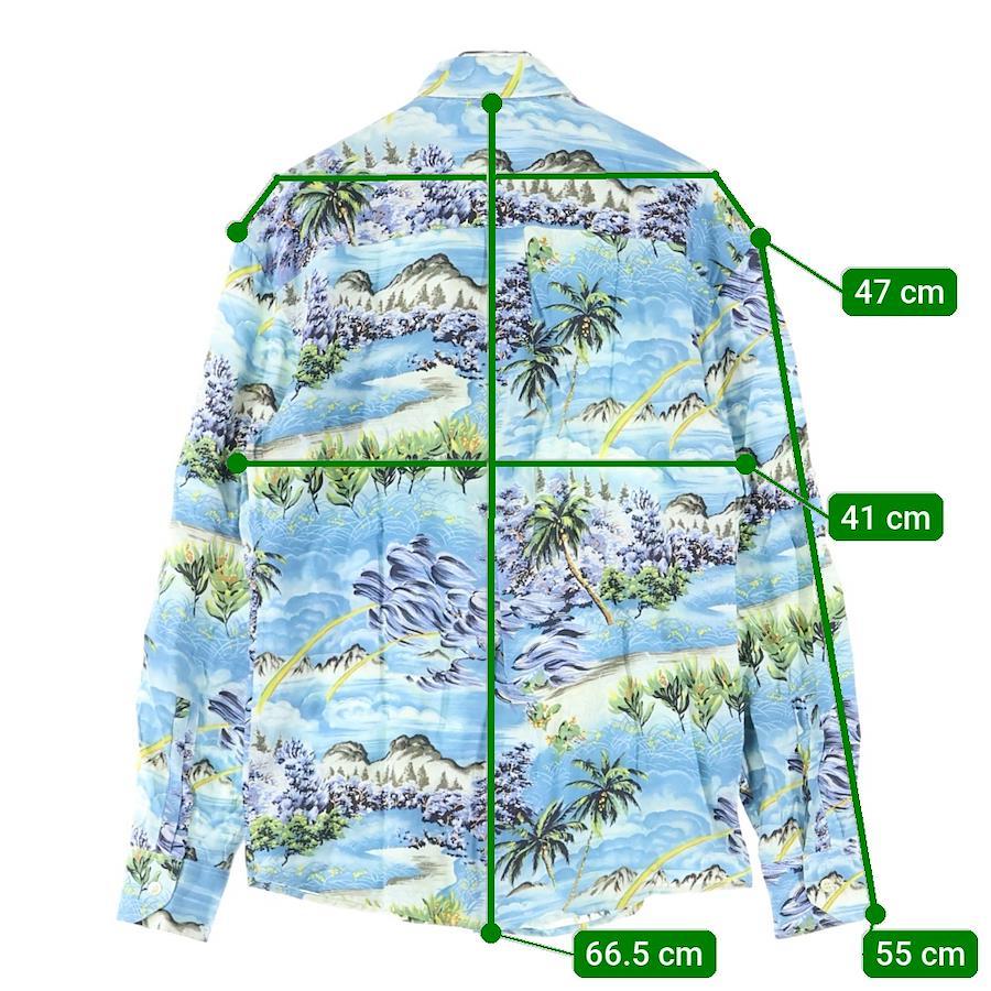 [モデル]16SS レーヨンアロハダメージ加工長袖シャツ ブルー 411620 Y934L