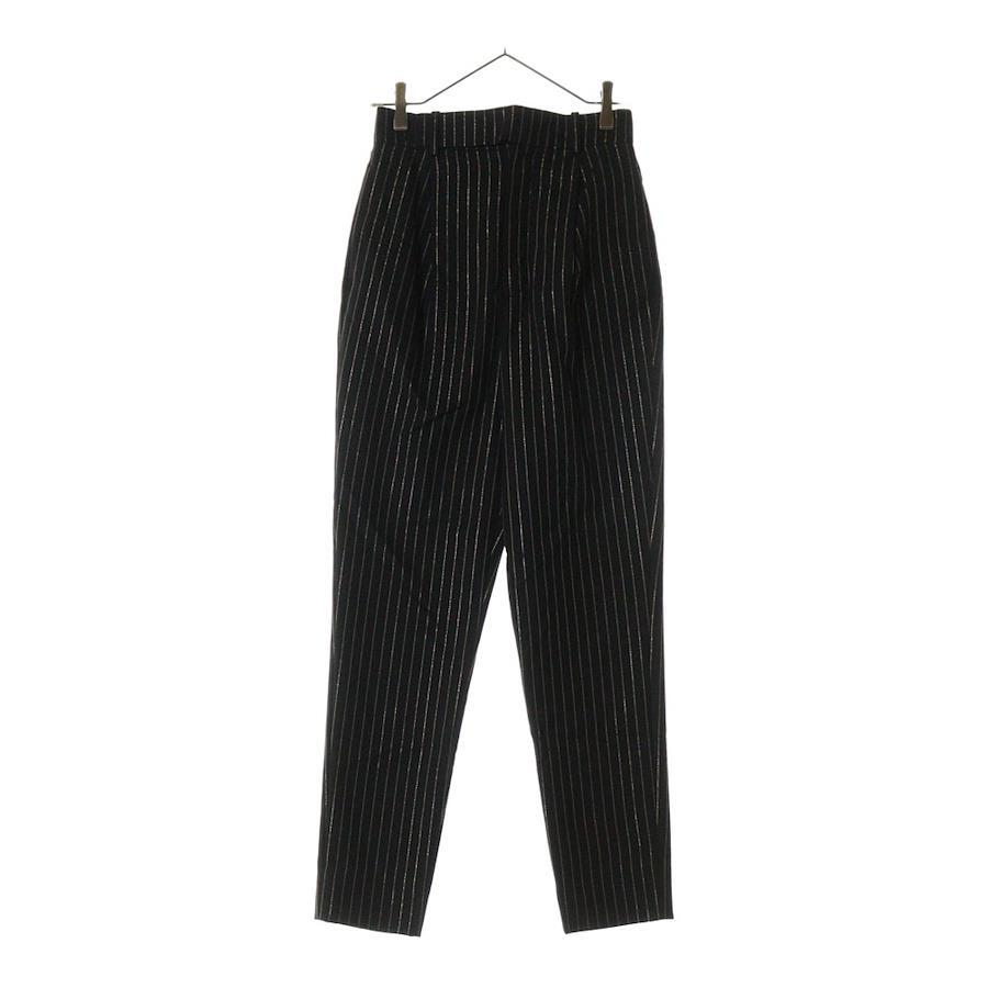 [モデル]19SS ストライプ スラックス ウール ロング パンツ ブラック BURA582705 Y142V レディース