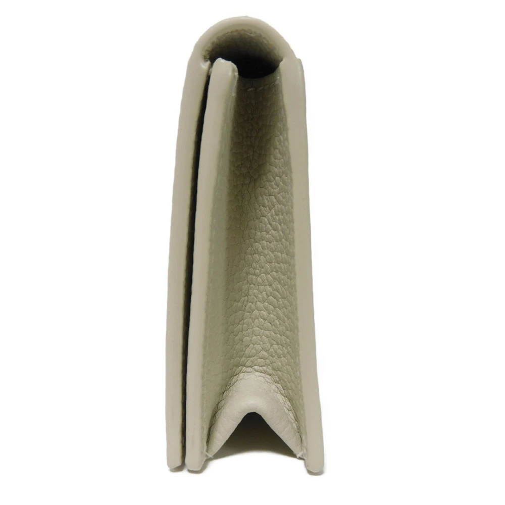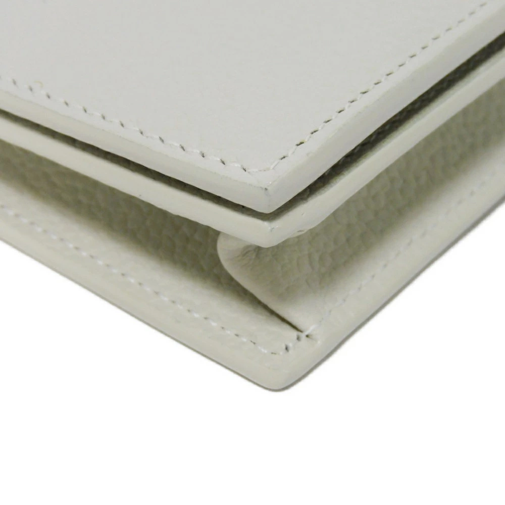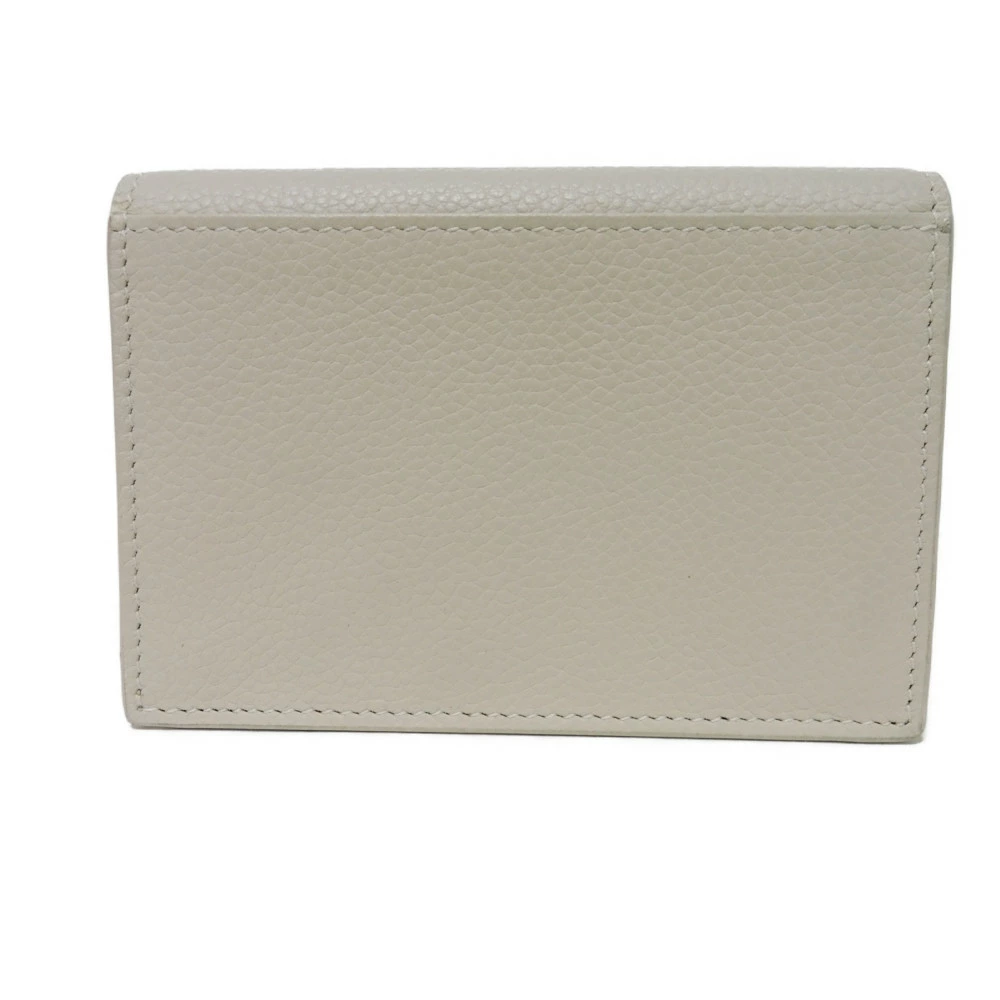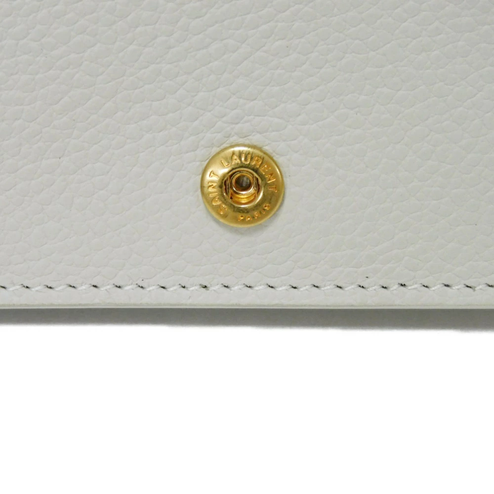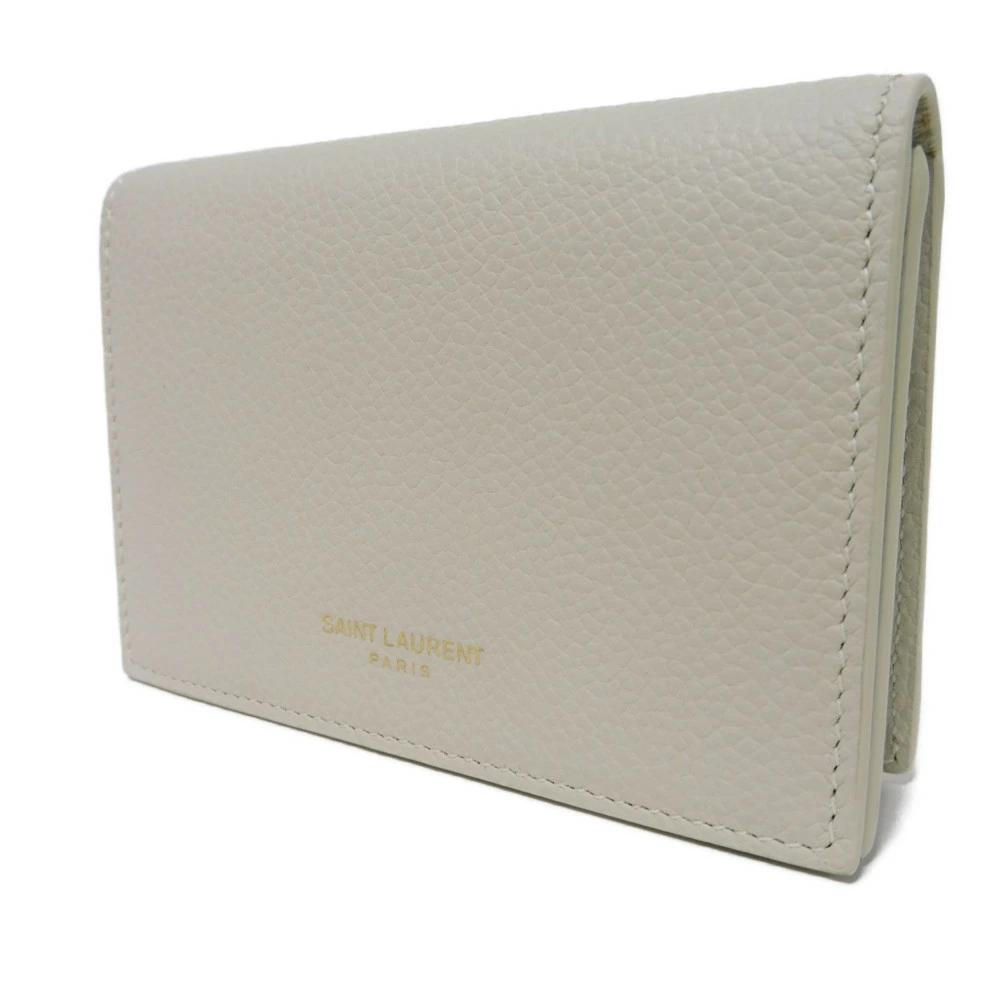| 型押しカーフレザーにサンローランパリの箔押しロゴがエンボス加工された「ビジネス カードホルダー」スナップ式カードケースです。 |