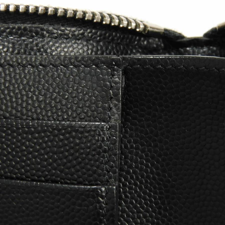 | 型押しカーフレザーにサンローランの箔押しロゴがエンボス加工された「イースト ウエスト ジップウォレット」ラウンドファスナー式二つ折り財布です。 |
