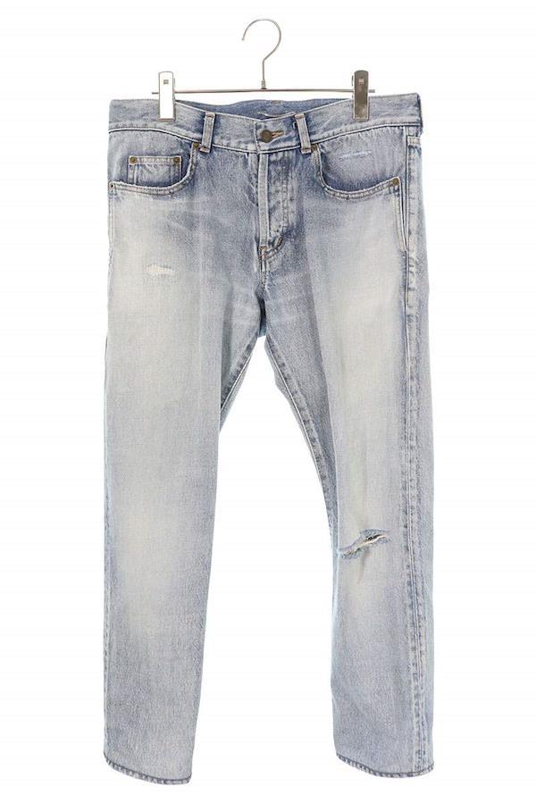 ランク:B (使用感がある商品)状態備考:全体的に毛羽立ちがありますブランド:サンローランパリサイズ:31色:インディゴ実寸:ウエスト幅42cm 股上24cm ワタリ幅31cm 股下71.5cm 裾幅18cm重さ:-素材:(本体) コットン (ラベル部分) 牛革付属品:なしその他特徴:ボタンフライデザインです・ケリングジャパンタグが付いています管理番号:10831-251106-0225