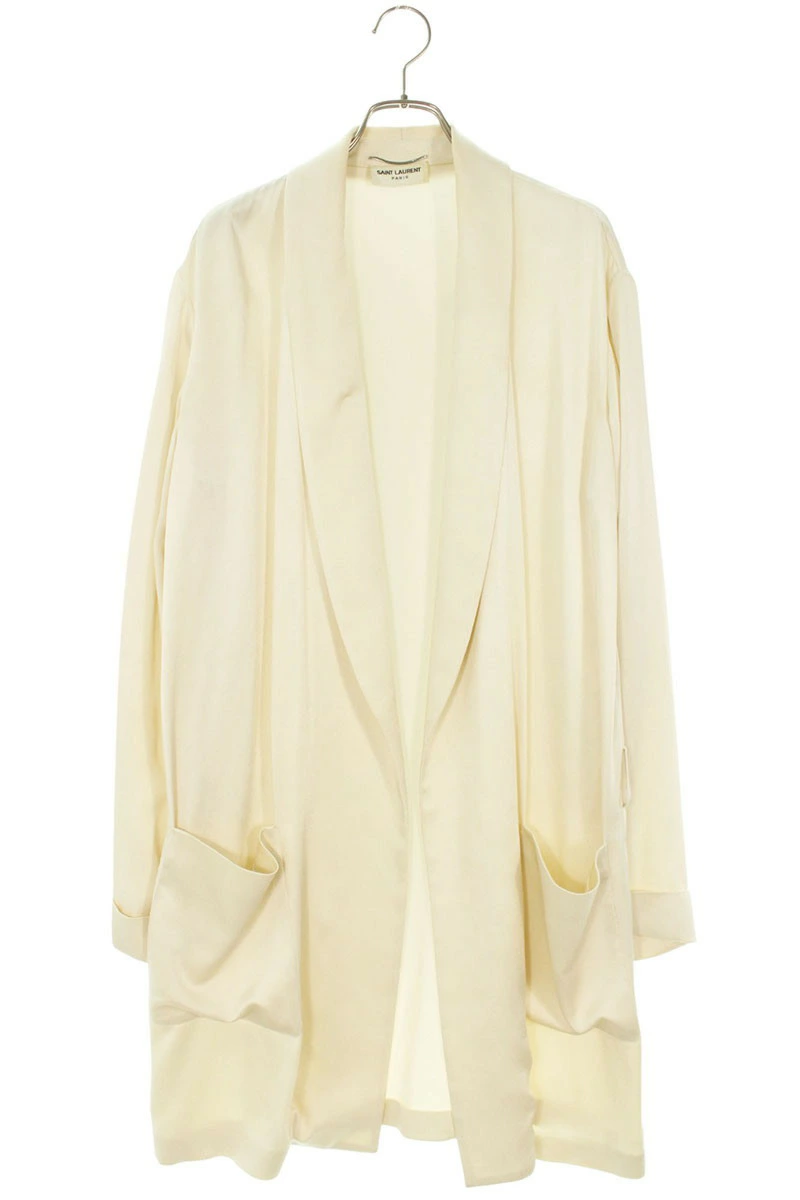 ランク:D (かなり使用感があり、破れやシミなどのダメージがある商品)状態備考:脇ジミがあります腰紐が欠損しています首元、袖、フロント等全体的に汚れがありますブランド:サンローランパリサイズ:46色:ホワイト実寸:肩幅48cm 身幅60cm 着丈95.5cm 袖丈63.5cm重さ:-素材:(本体) アセテート71%、レーヨン29% (ポケット裏地) シルク付属品:なしその他特徴:-管理番号:10210-250913-0115
