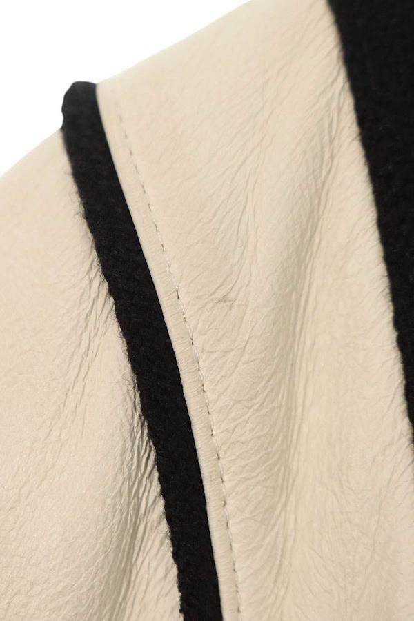 素材:(表地) ウール90%、ナイロン10% (裏地) キュプラ60%、コットン40% (ポケット裏地) コットン (別布1) 羊革 (別布2) ウール93%、ナイロン6%、ポリウレタン1%