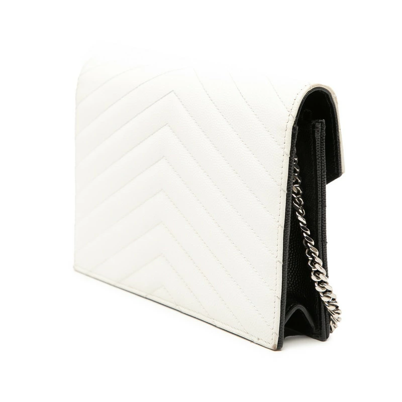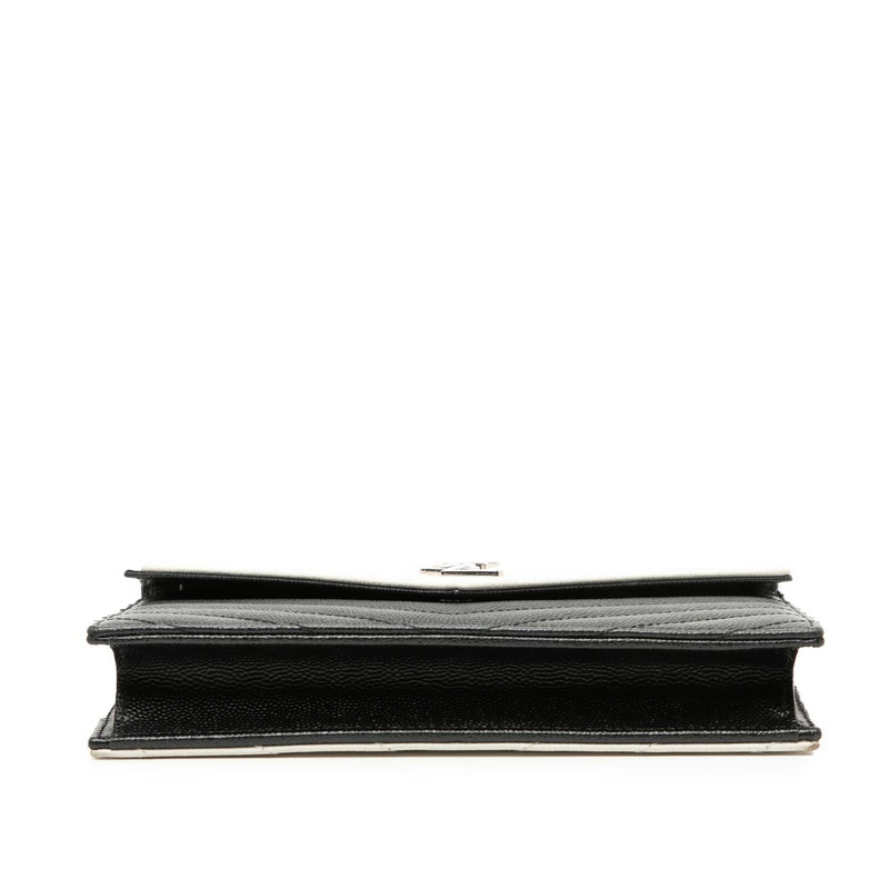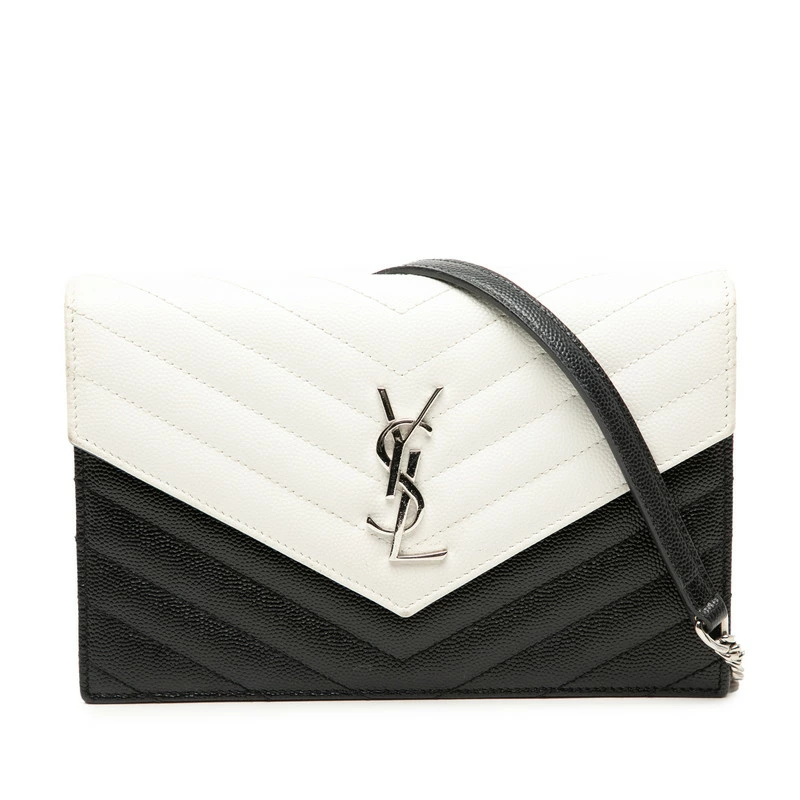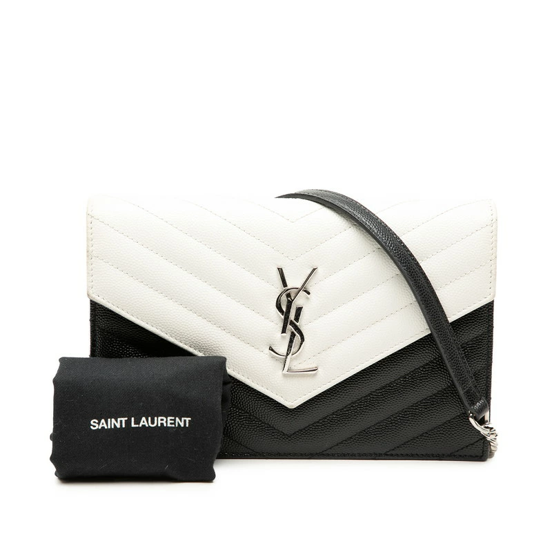 - サンローラン カサンドラ YSLロゴ チェーンウォレット ショルダーバッグ 393953 ブラック ホワイト レザー レディース SAINT LAURENT 【中古】