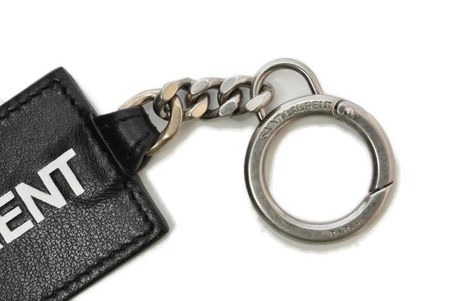 サンローランより、キーリング/キーホルダー。ロゴがセンターにデザインされており、存在感があります。