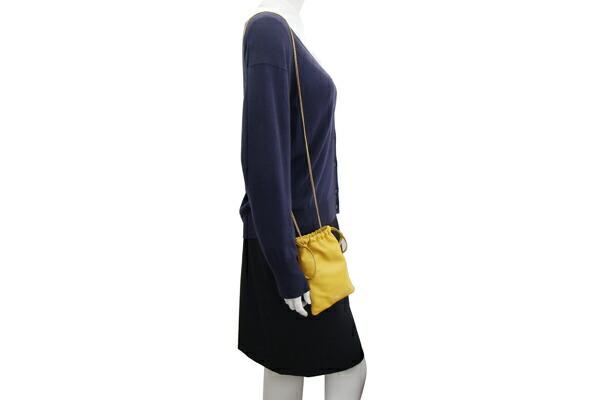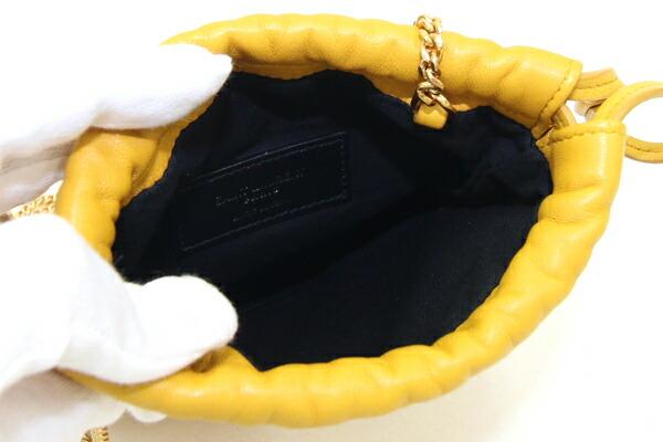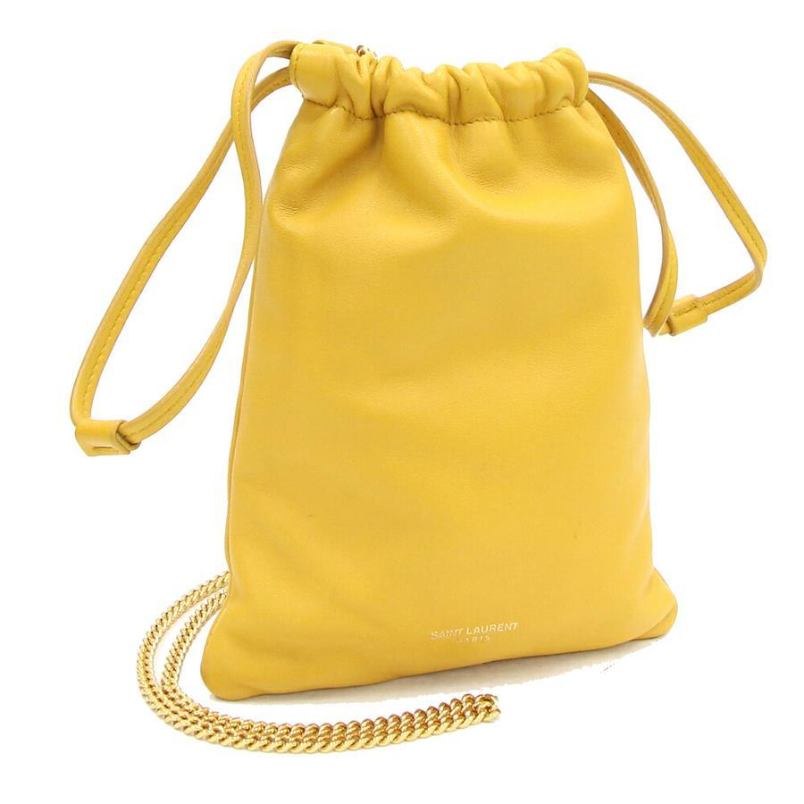 サンローランショルダーバッグドローストリングポーチ640710イエローレザー中古斜め掛けチェーンショルダーロゴ巾着ドローストリングレディースSAINTLAURENT