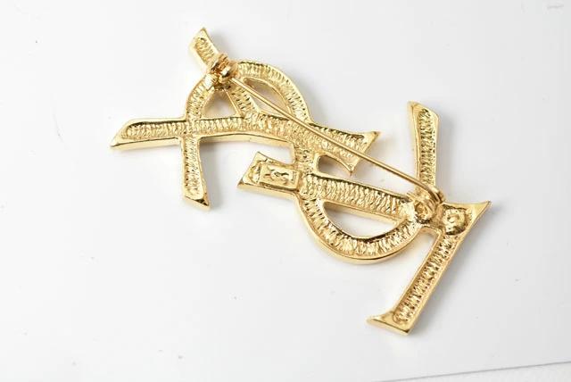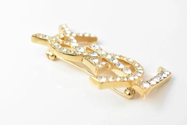SAINT LAURENT ブローチ モノグラムYSLロゴ ラインストーン/ゴールド