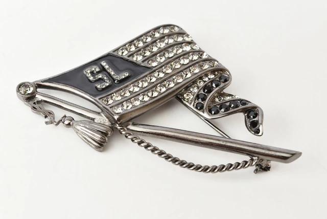 SAINT LAURENT ブローチ ラインストーン フラッグモチーフ ヴィンテージシルバー