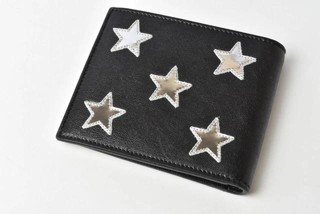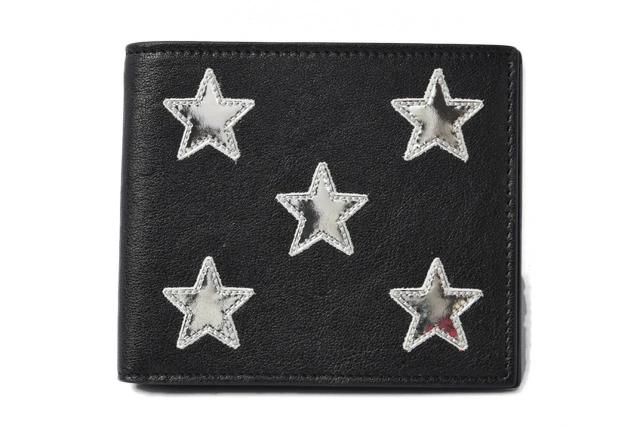SAINT LAURENT メンズ 折財布 スター レザー ブラック/シルバー 361320
