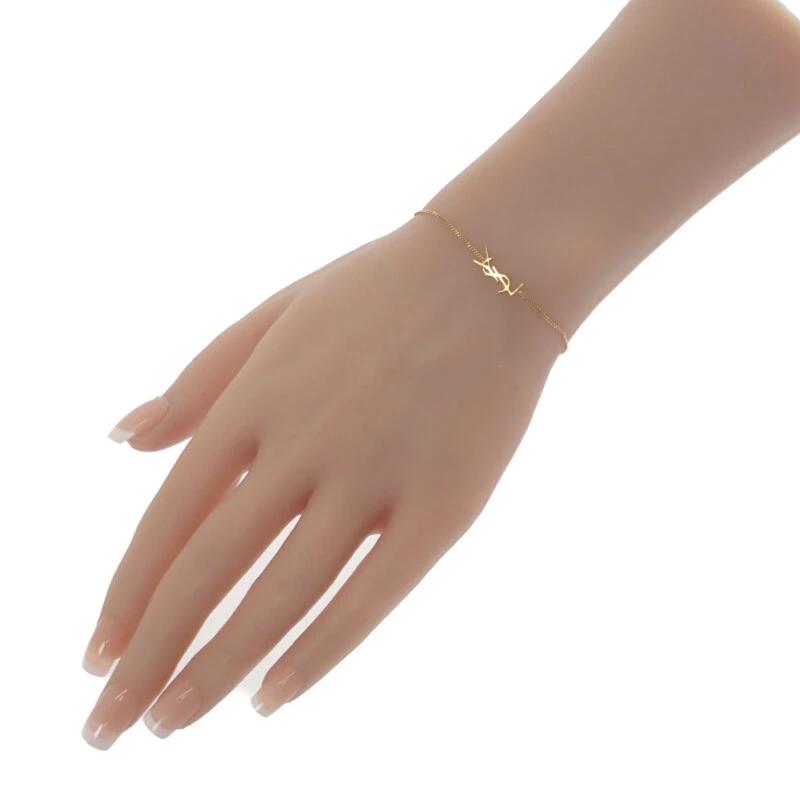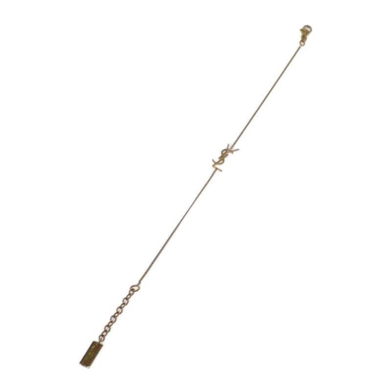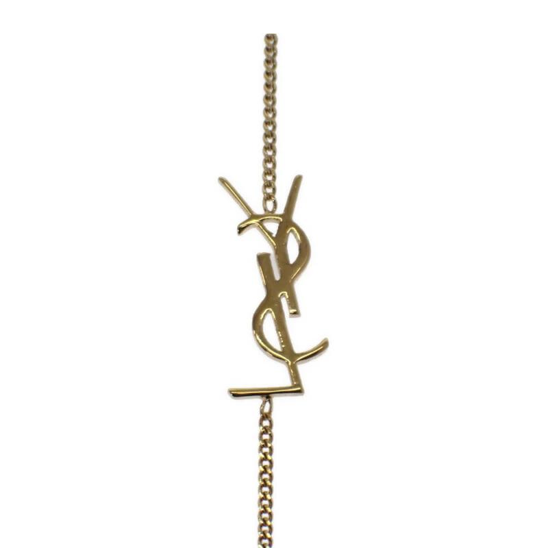 YSLロゴチャームがあしらった、艶やかなゴールドトーンメタルが、手元を華やかに演出。細めのチェーンとロゴチャームが絶妙なバランスで、シンプルながらも高級感漂うデザインに仕上がっています。