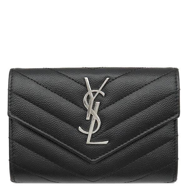 ▲クリックで拡大されますサンローラン SAINT LAURENT コインケース モノグラム スモール エンベロープウォレット レザー ブラック 黒 小銭入れ カード入れ シルバー金具 414404 レディース定番 人気 美品 【中古】