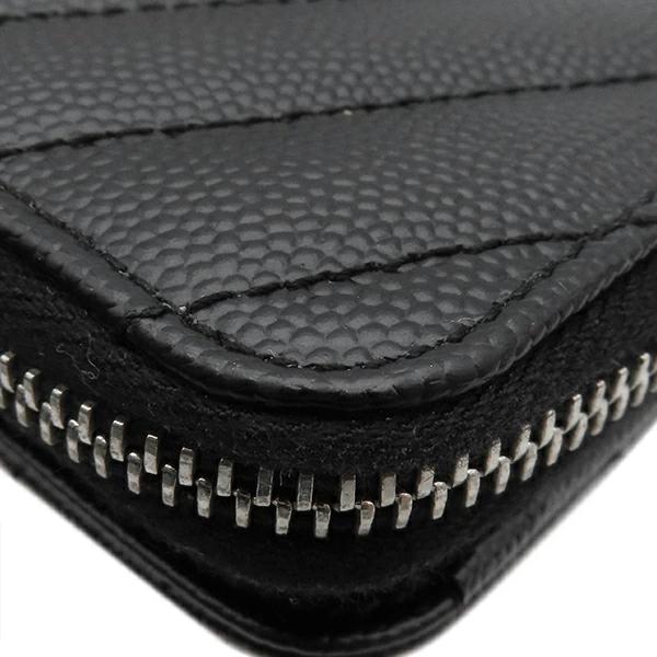 ▲クリックで拡大されますサンローラン SAINT LAURENT 二つ折り財布 コンパクト ジップアラウンド ウォレット レザー ブラック 黒 Vステッチ シルバー金具 403723 レディース 【保存袋】定番 人気 美品 【中古】